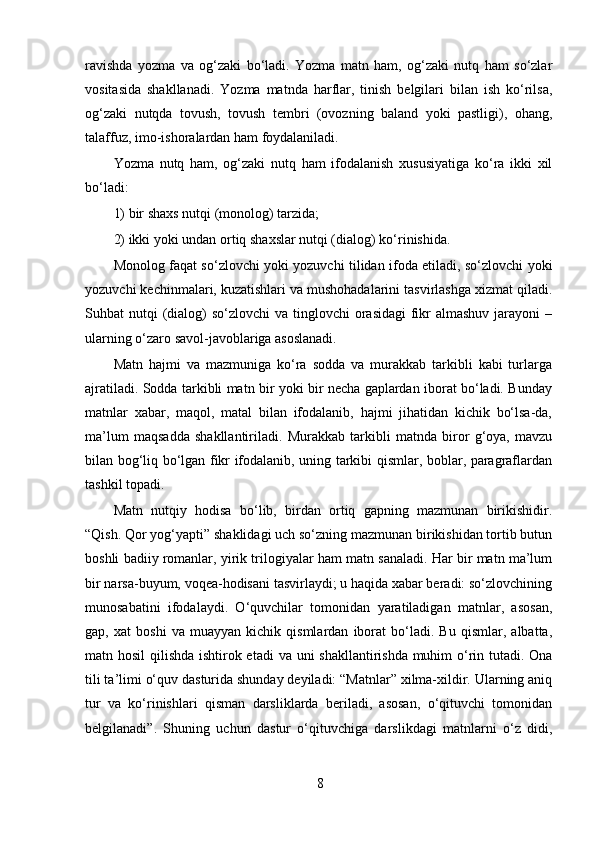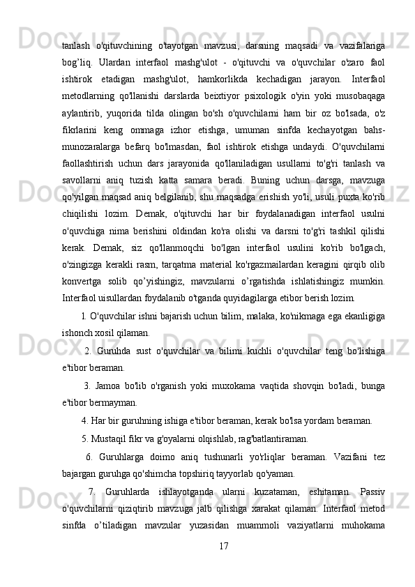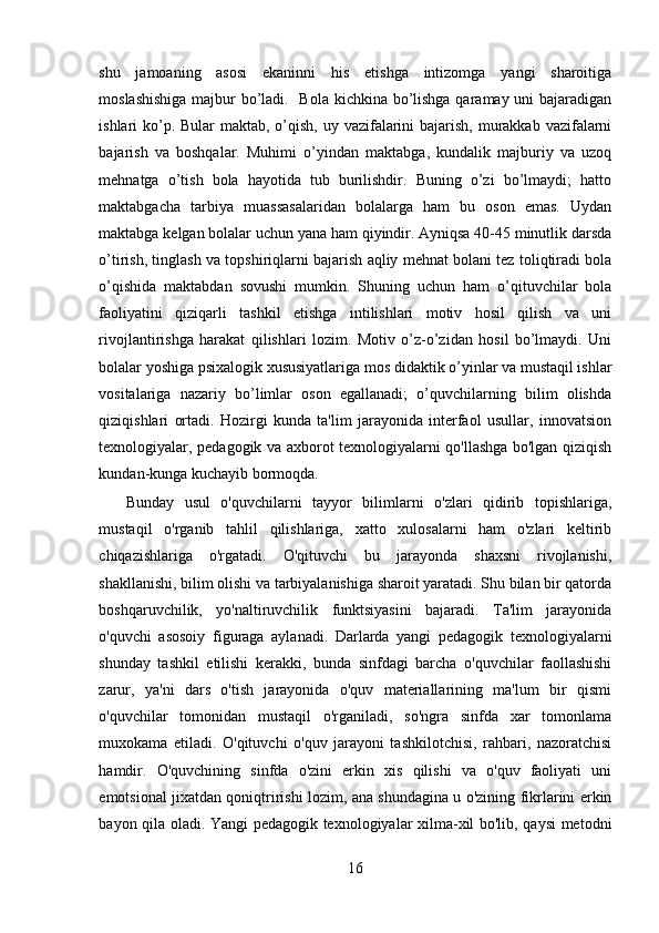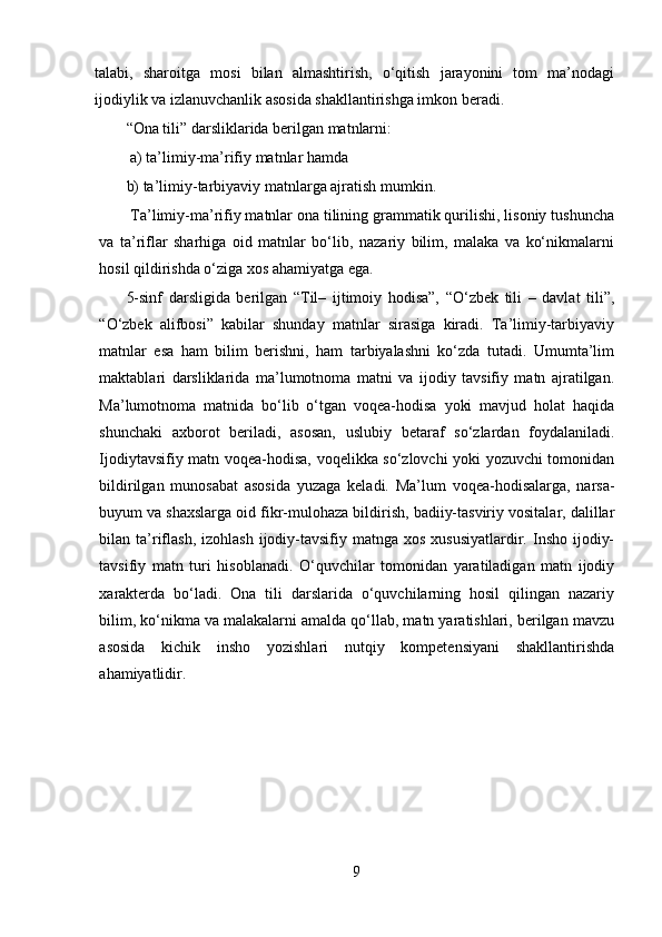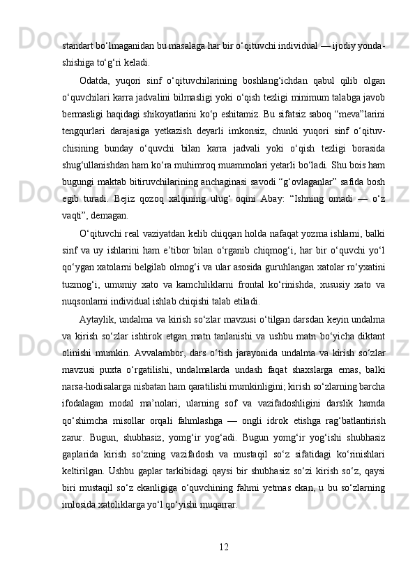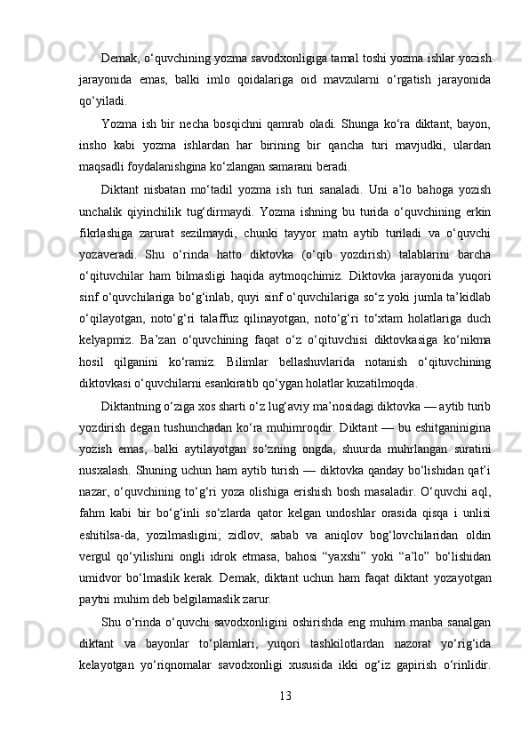 Yozma ishlar – o’quvchilar tafakkurini rivojlantiruvchi vosita