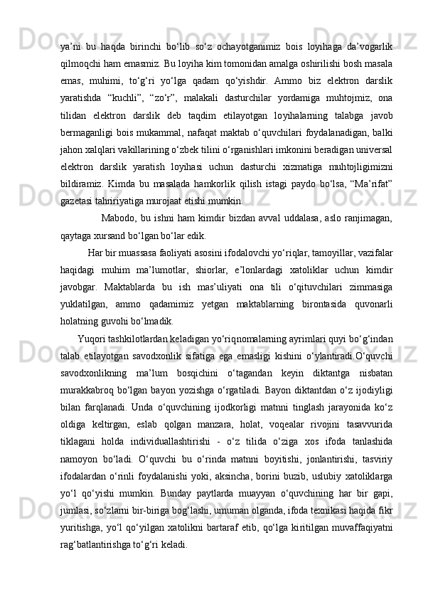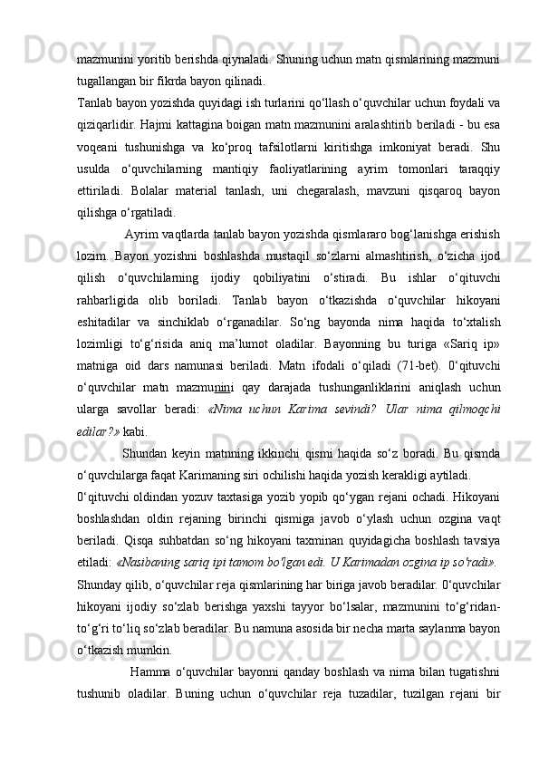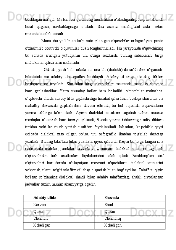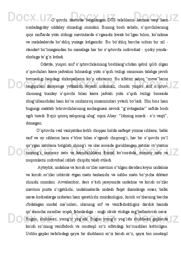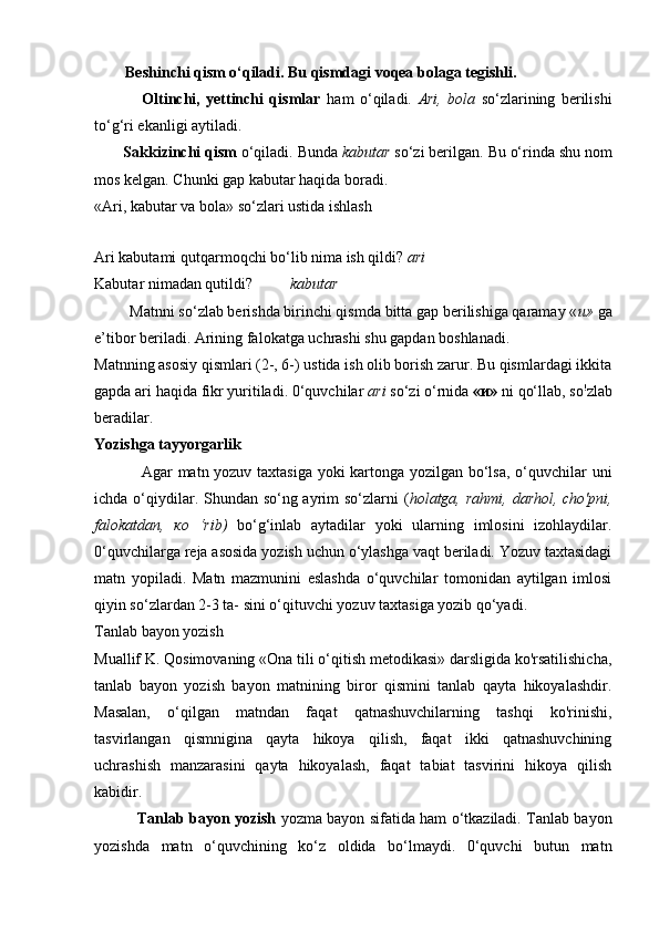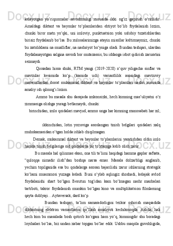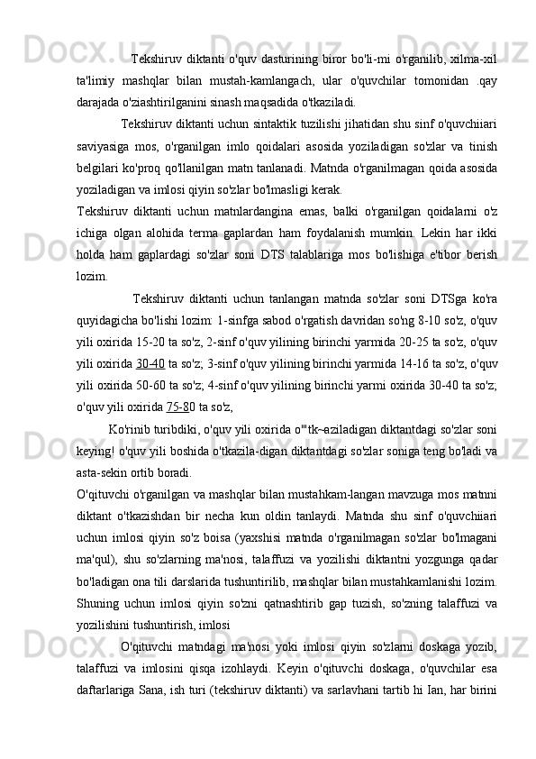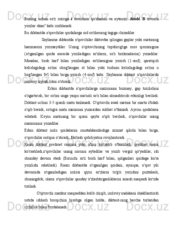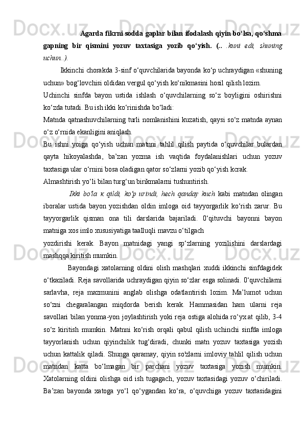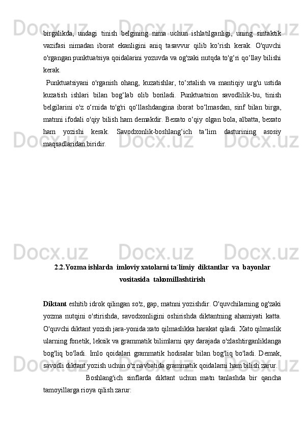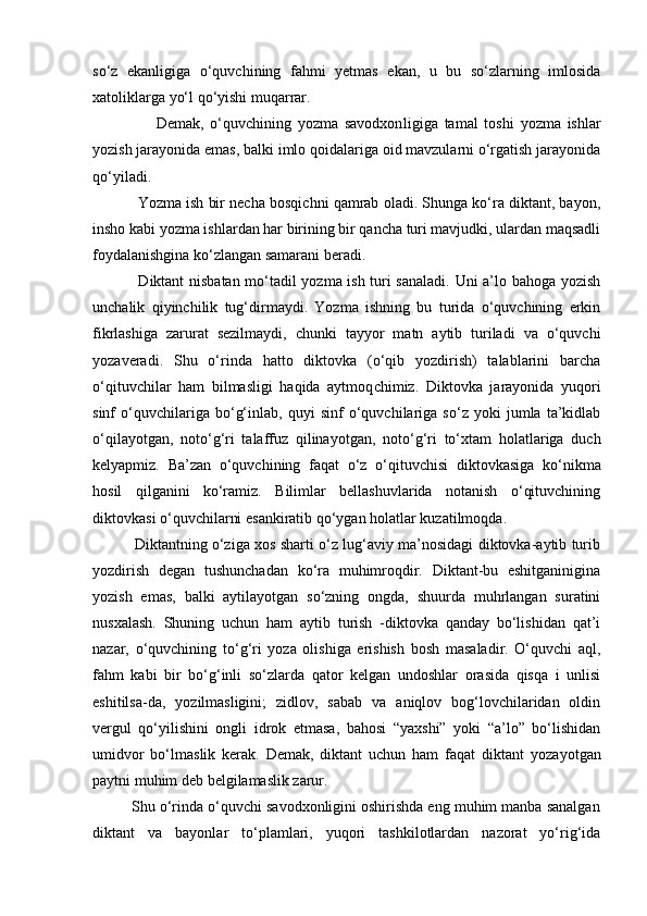 2.2.Yozma ishlarda imloviy xatolarni ta`limiy diktantlar va bayonlar vositasida takomillashtirish