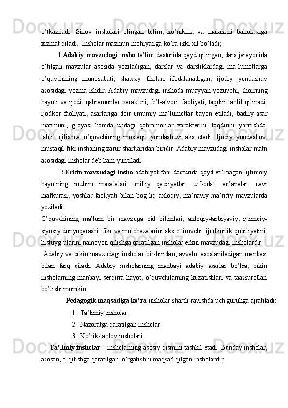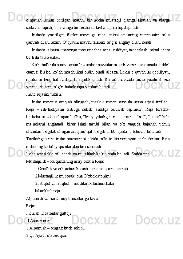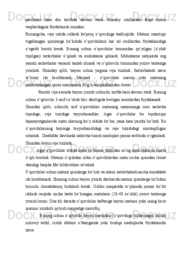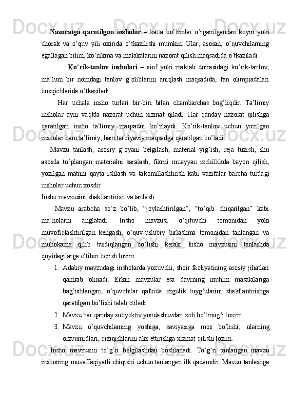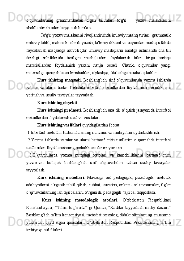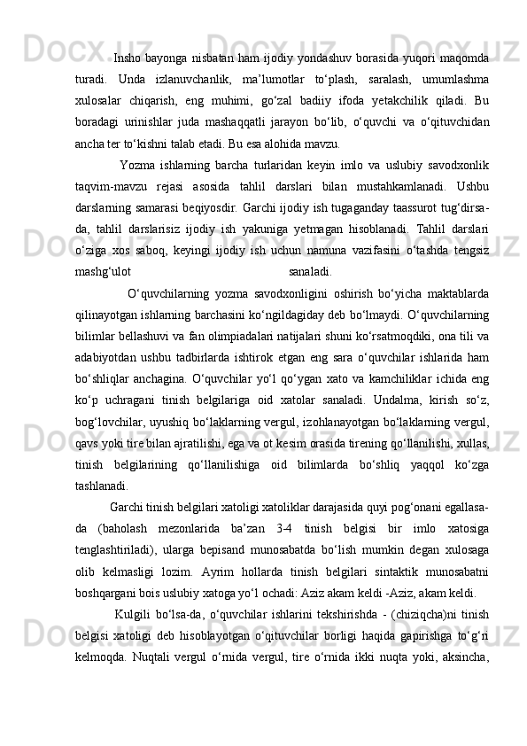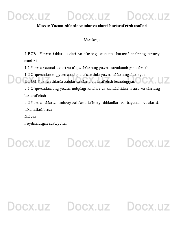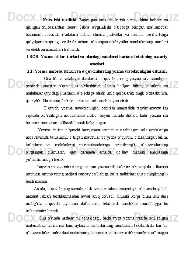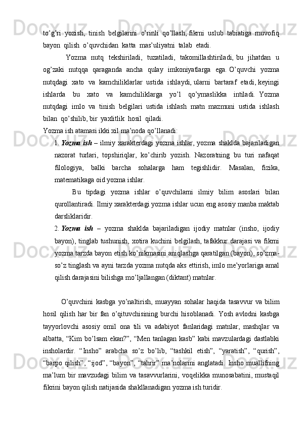 I BOB. Yozma ishlar turlari va ulardagi xatolarni bartaraf etishning nazariy asoslari