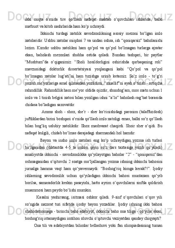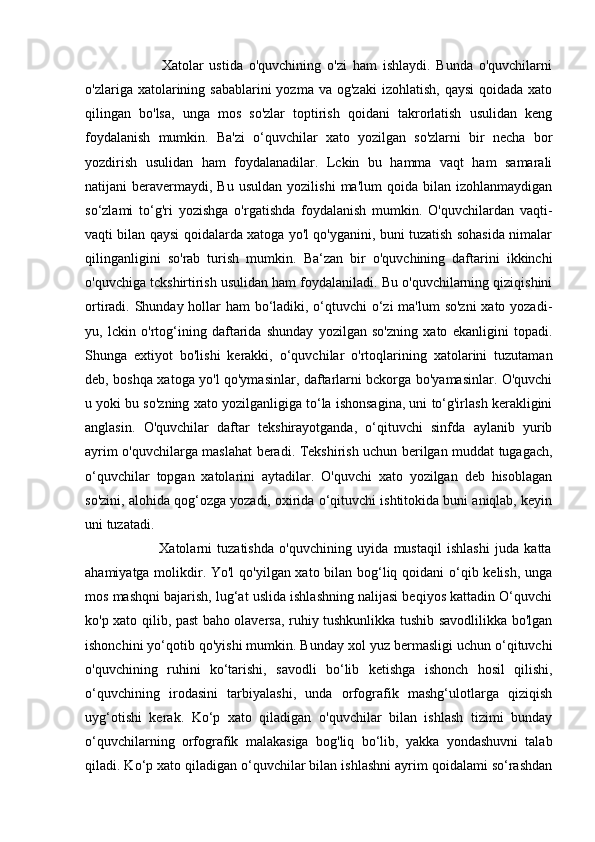 Yozma ishlarda xatolar va ularni bartaraf etish usullari