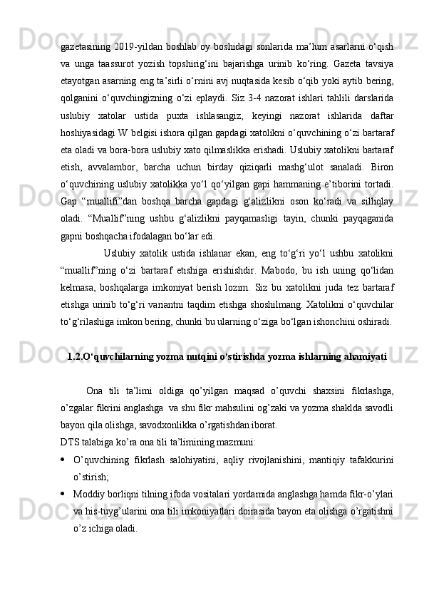 1.2.O‘quvchilarning yozma nutqini o‘stirishda yozma ishlarning ahamiyati