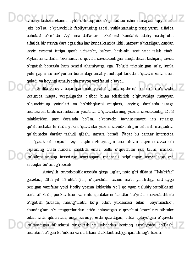 1.1.Yozma nazorat turlari va o‘quvchilarning yozma savodxonligini oshirish