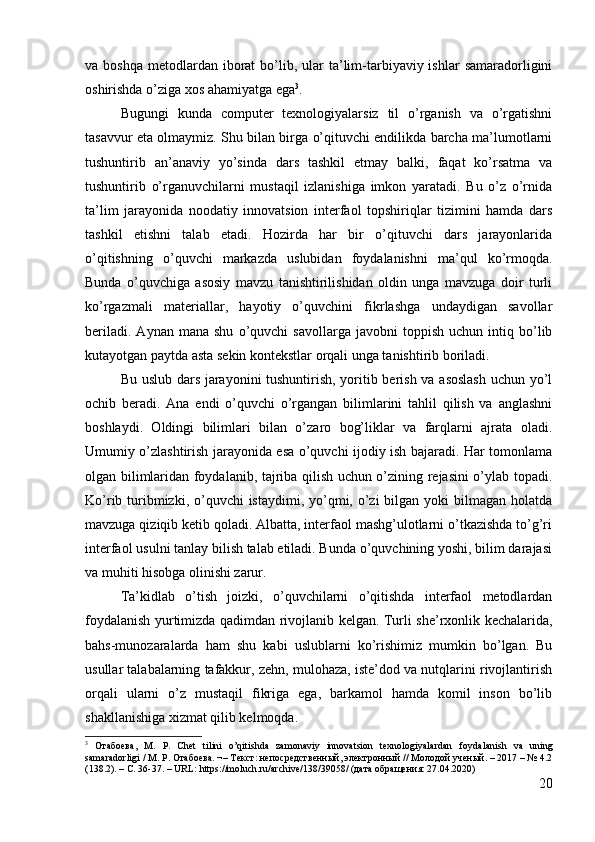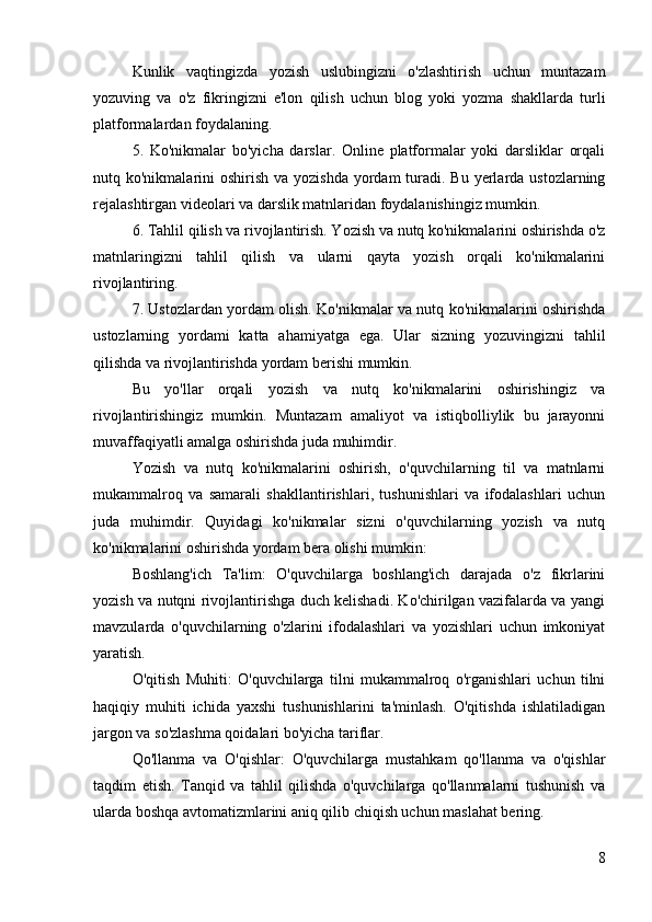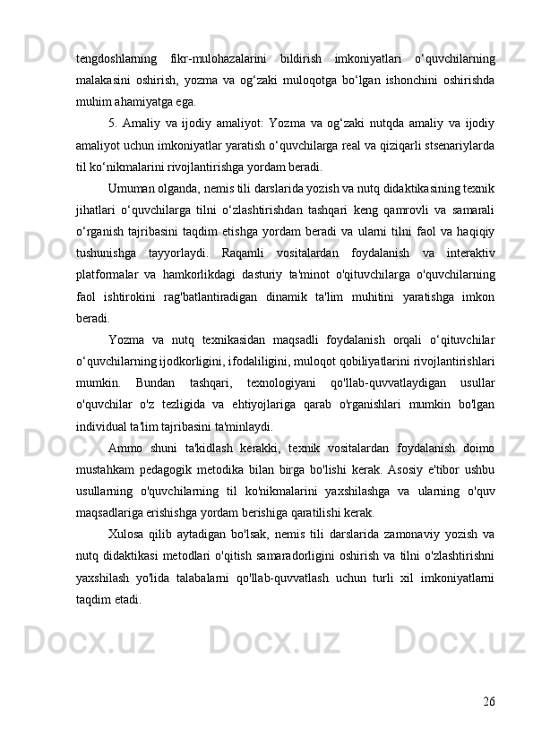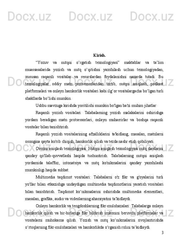 Yozma va nutqqa o’rgatish texnologiyasi