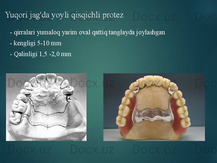 Юкори ва пастки жагларда кисман олиб куйилувчи тиш протези асосининг чегаралари