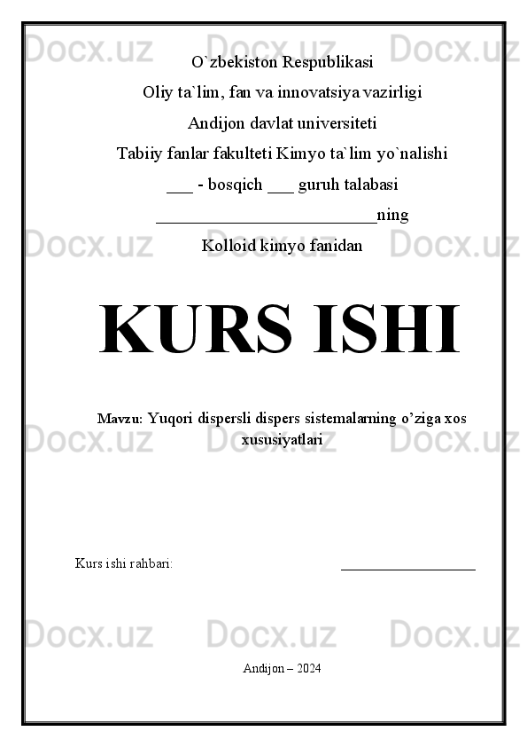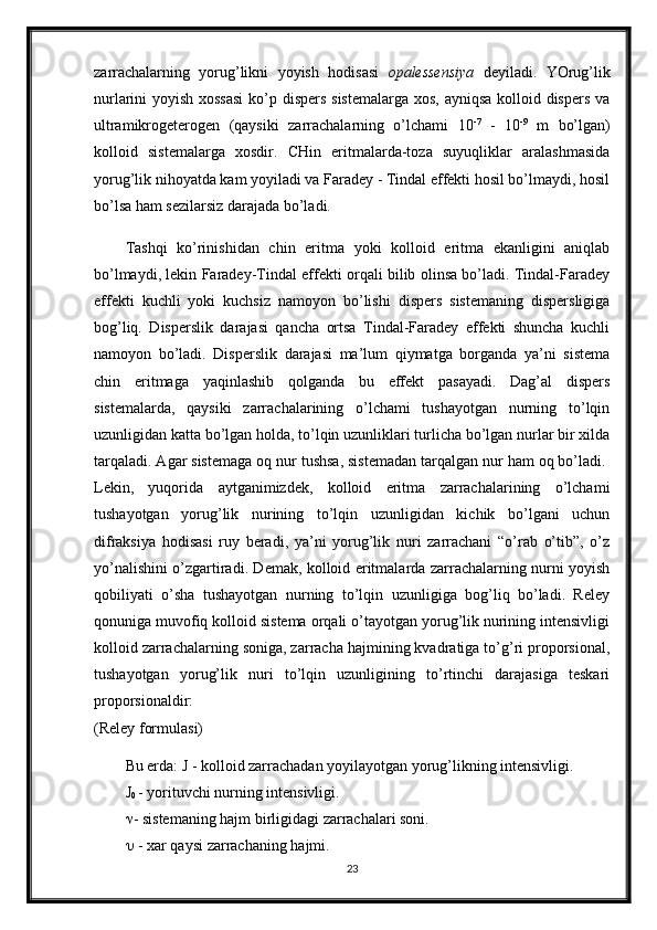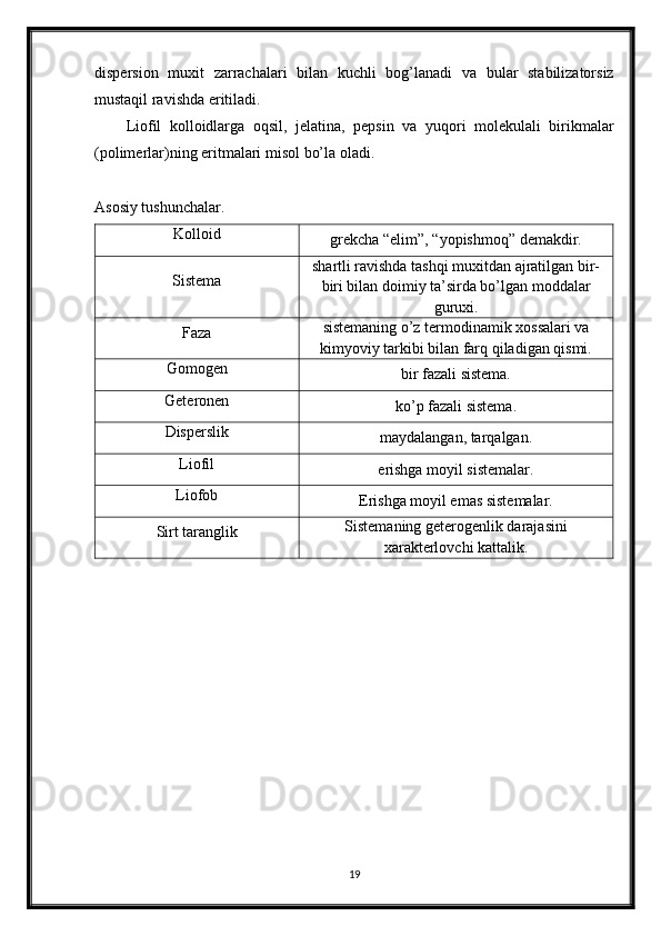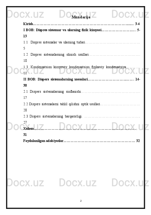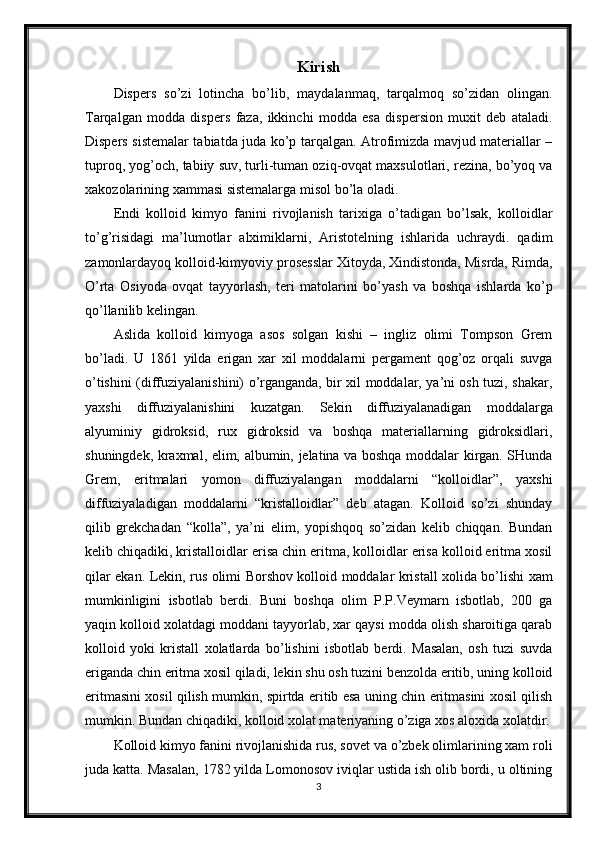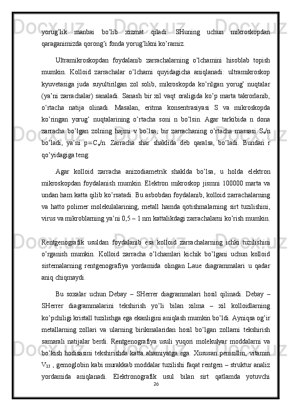 Yuqori dispersli dispers sistemalarning o’ziga xos xususiyatlari