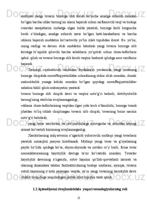1.2.Iqtisodiyotni rivojlantirishda yuqori texnologiyalarning roli 21