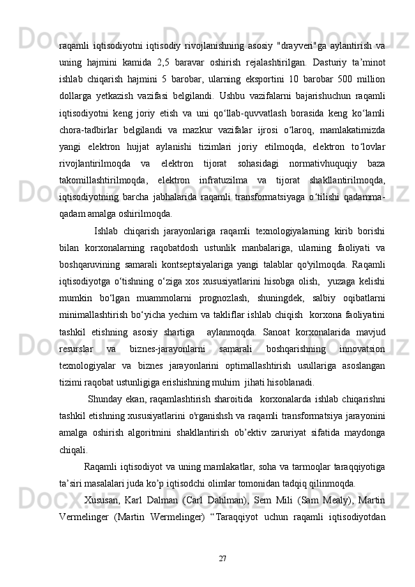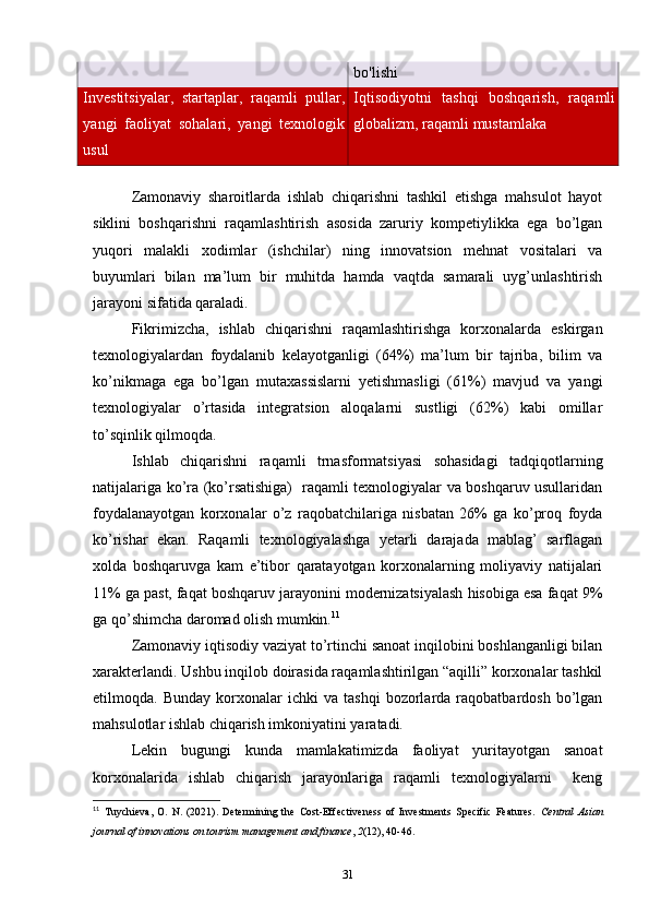 2.1.Ishlab chirish jarayonlari samaradorligini oshirishda raqamli texnologiyalardan foydalanish 26