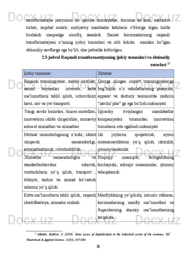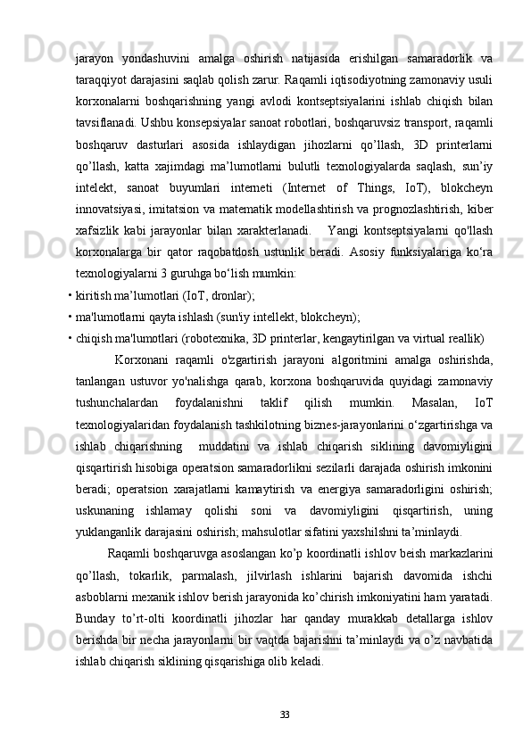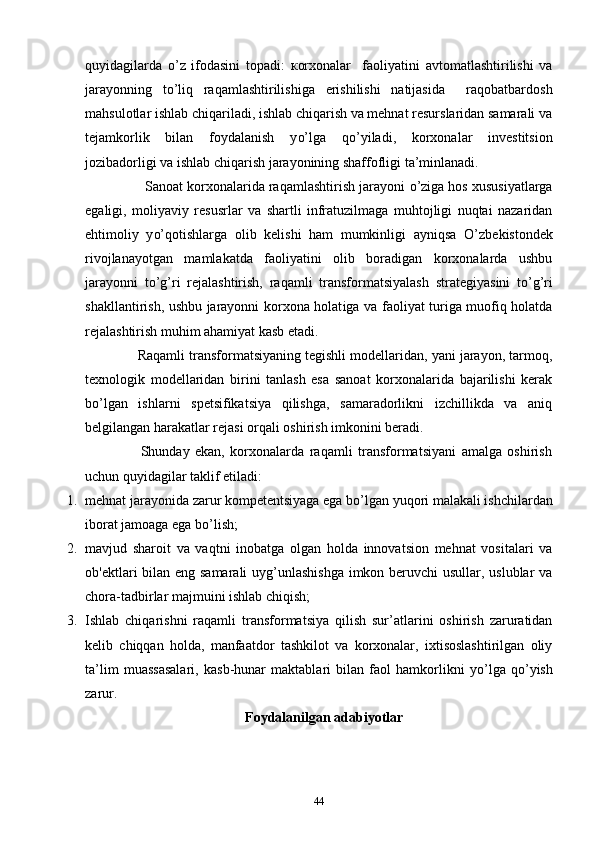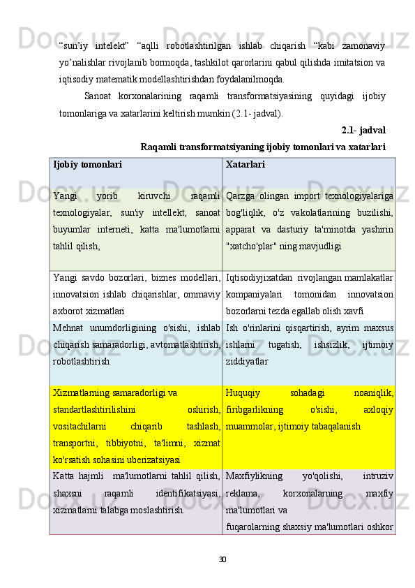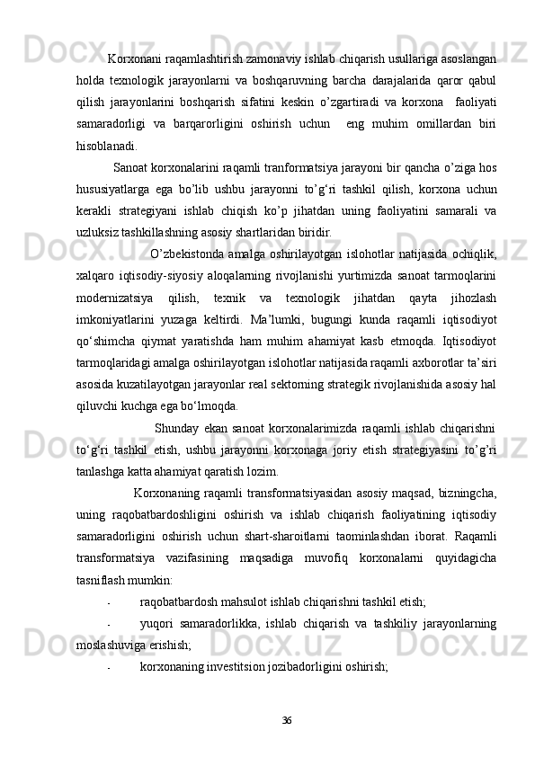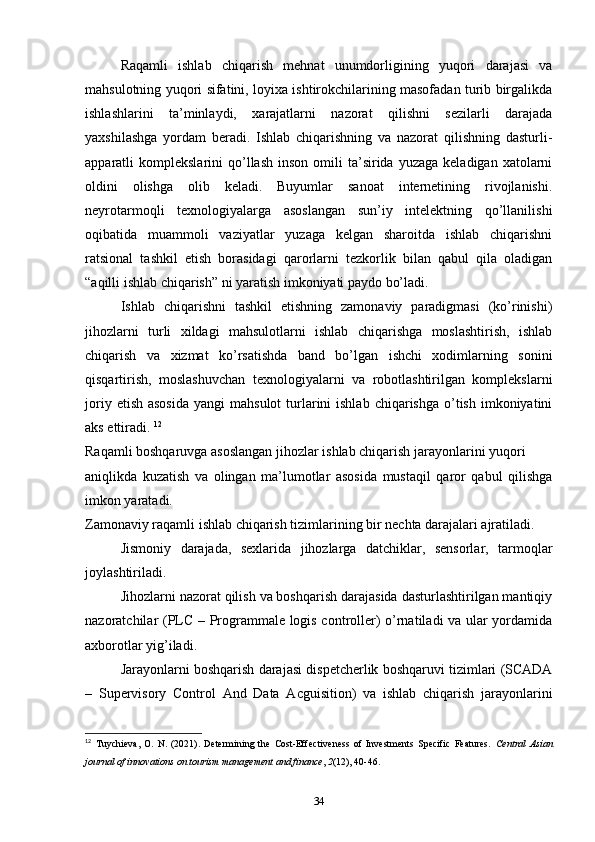 2.2.Sanoat korxonalarida raqamli texnologiyalardan foydalanishning xususiyatlari 34