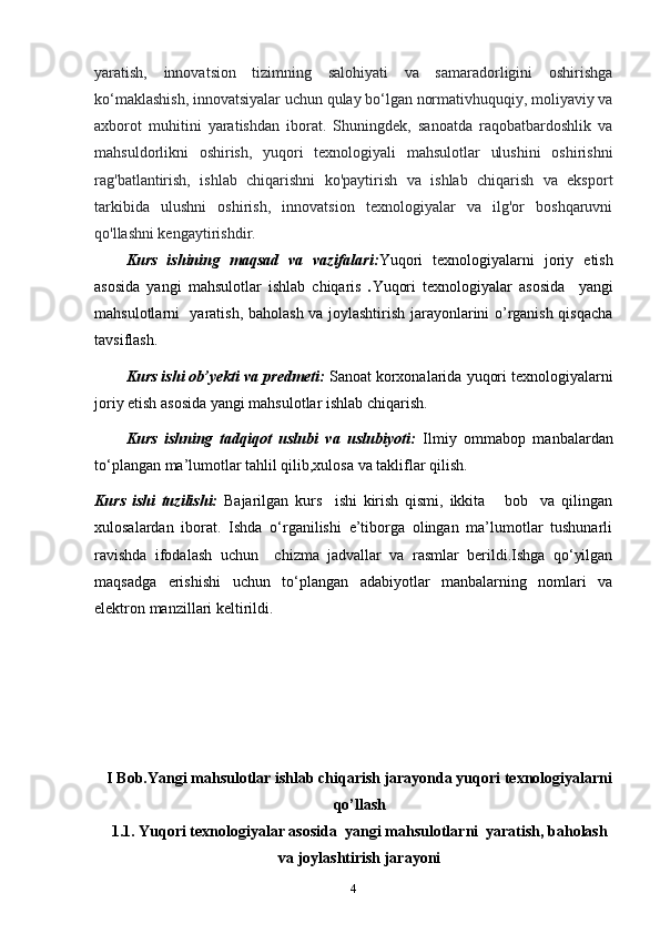 I Bob.Yangi mahsulotlar ishlab chiqarish jarayonda yuqori texnologiyalarni qo’llash 4
