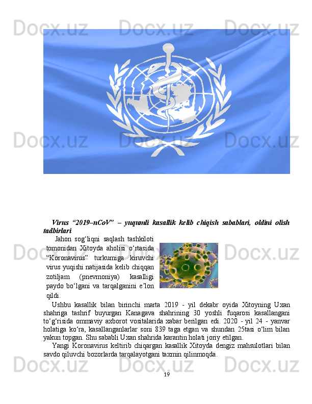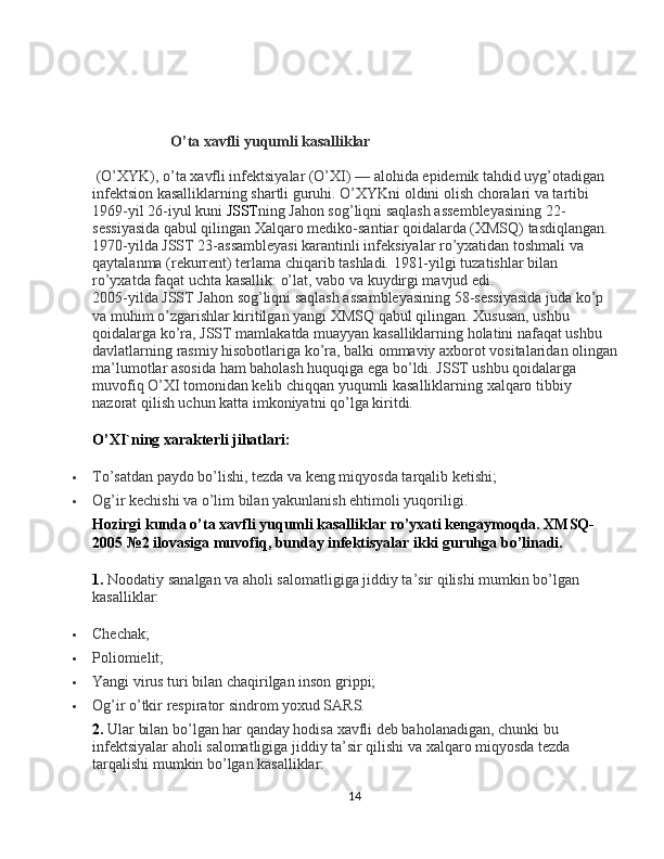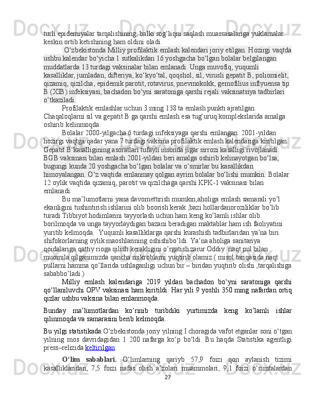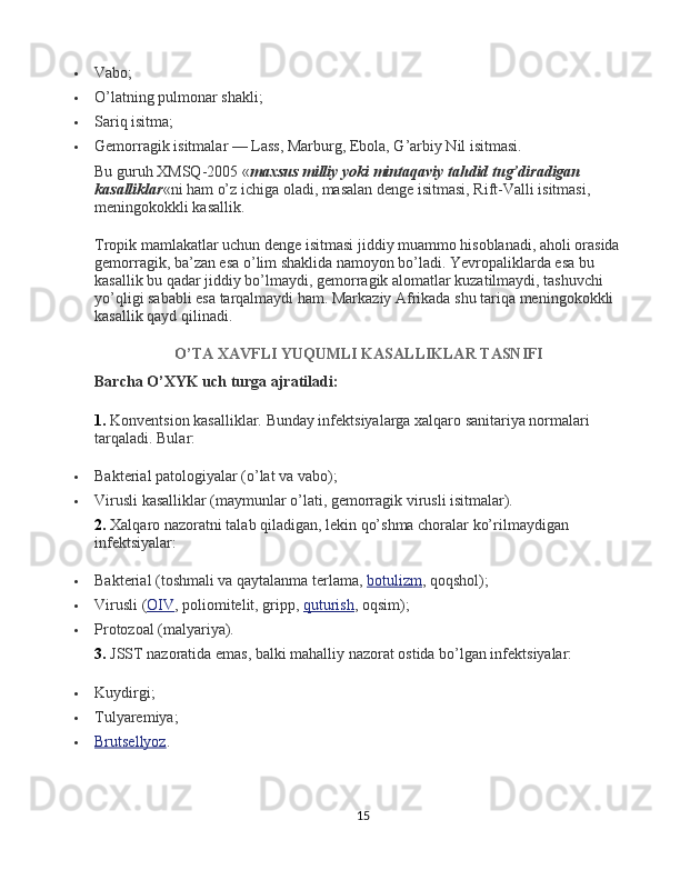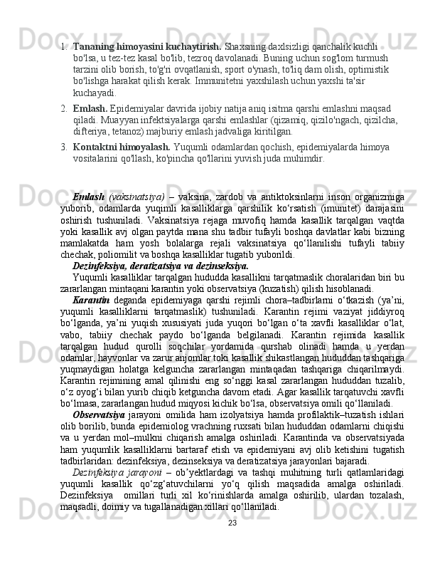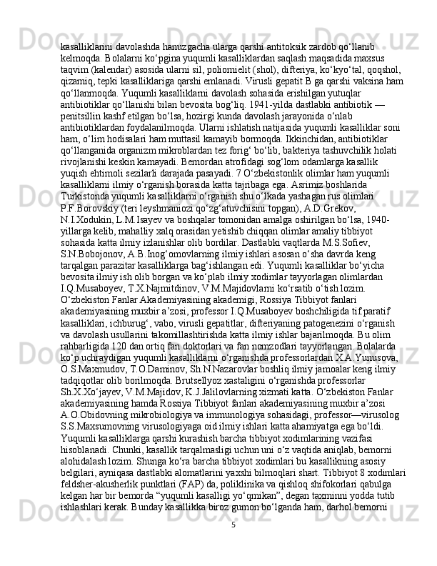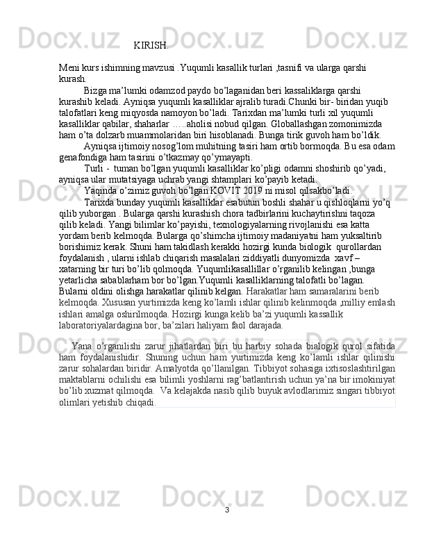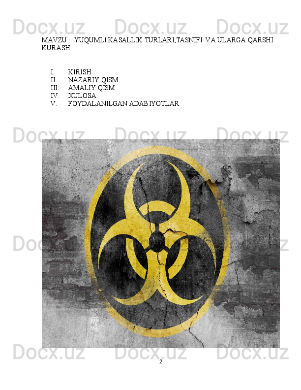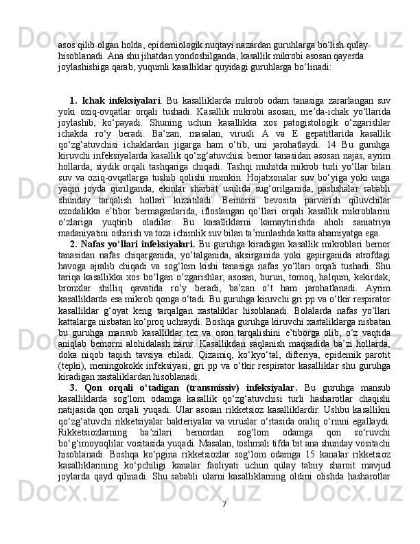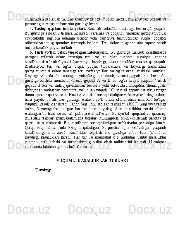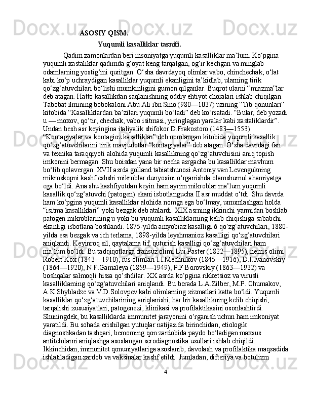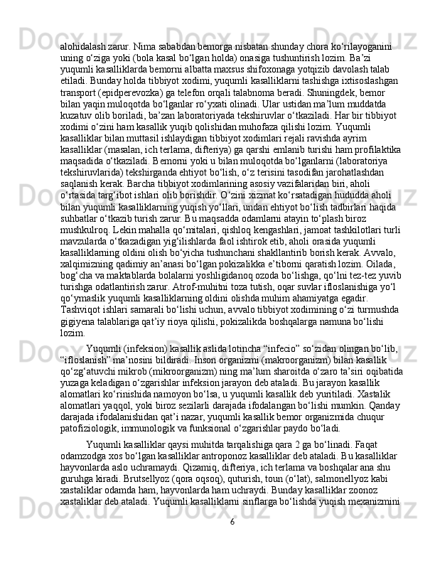 Yuqumli kasallik turlari, tasnifi va ularga qarshi kurash