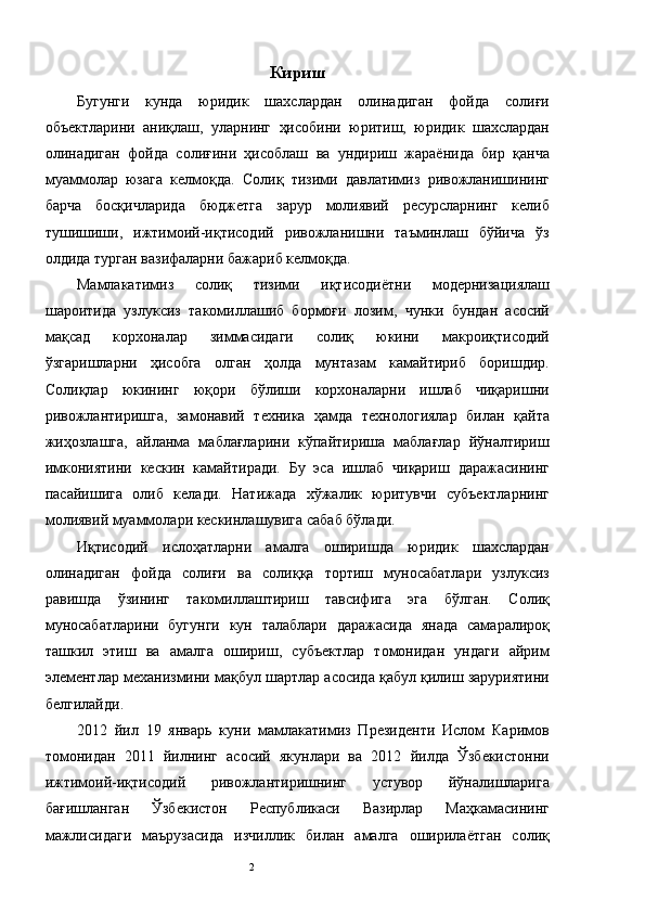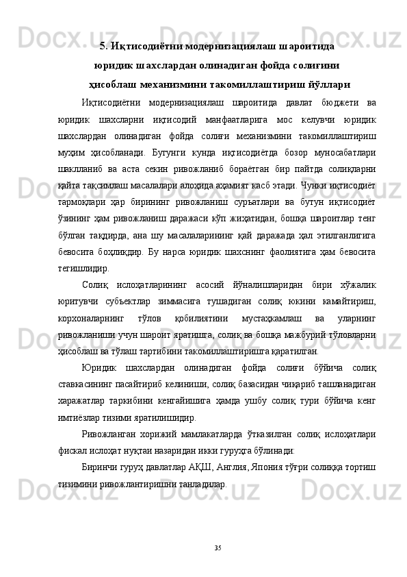 Юридик шахслардан олинадиган фойда солиғини ҳисоблаш тартибини такомиллаштириш йўллари