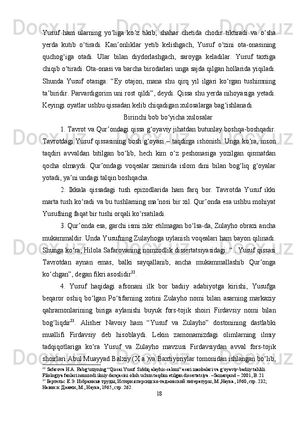 I BOB. OʻZBEK MUMTOZ ADABIYOTIDA YUSUF SYUJETI ASOSIGA QURILGAN DOSTONLARNING ILK MANBALARI (TAVROT VA INJIL)