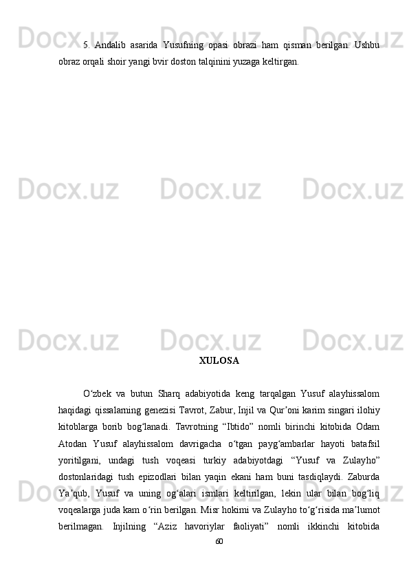 3.2. Andalib va uning “Yusuf va Zulayho” dostoni………………………………..53