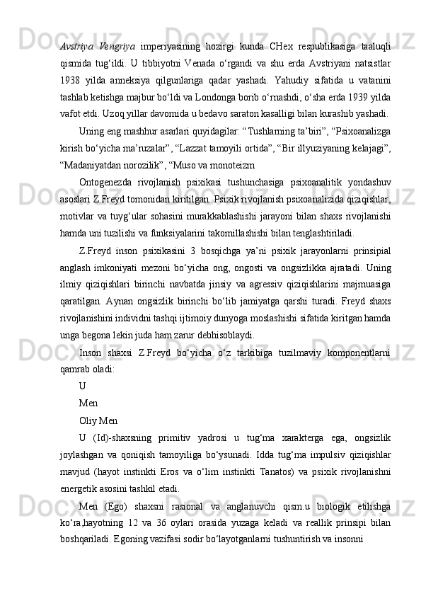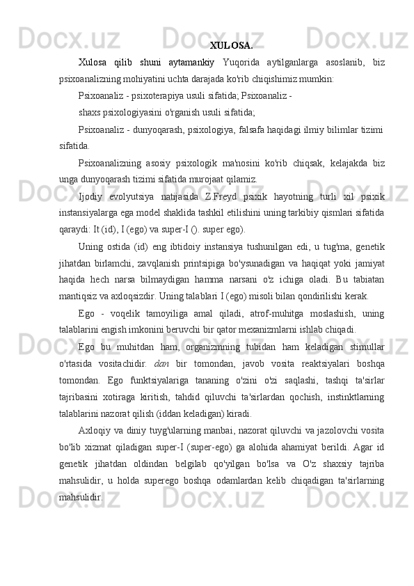 II.BOB. Z.FREYDNING KLASSIK PSIXANALIZIDA PSIXIK