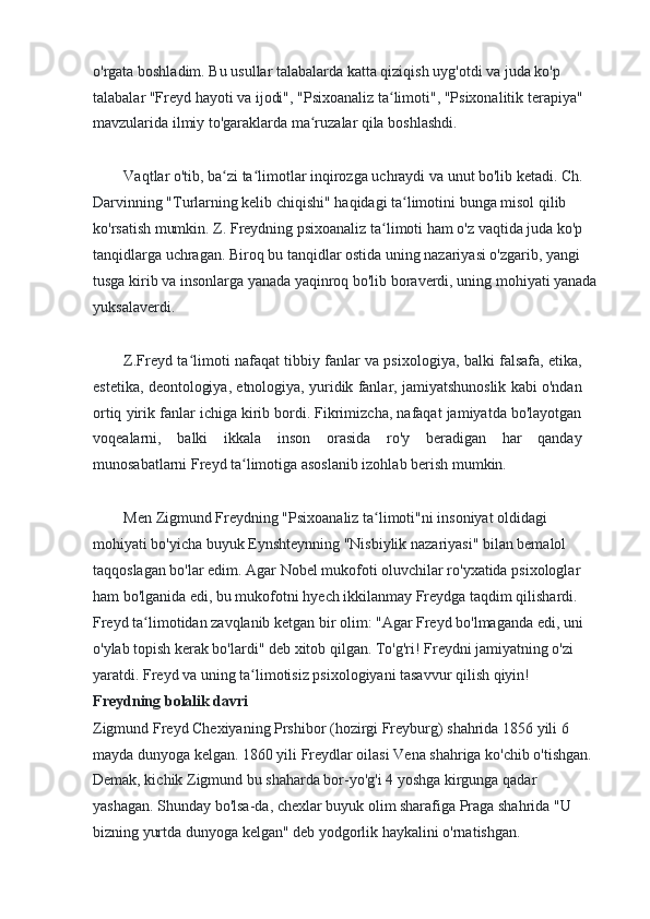 2.2. Freydni o'qitish g'oyasi qachon paydo bo'ldi