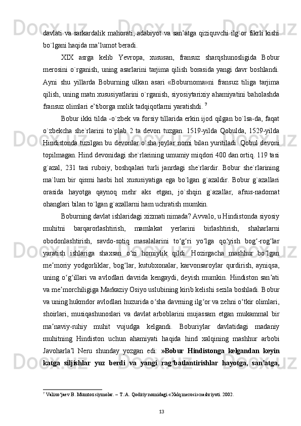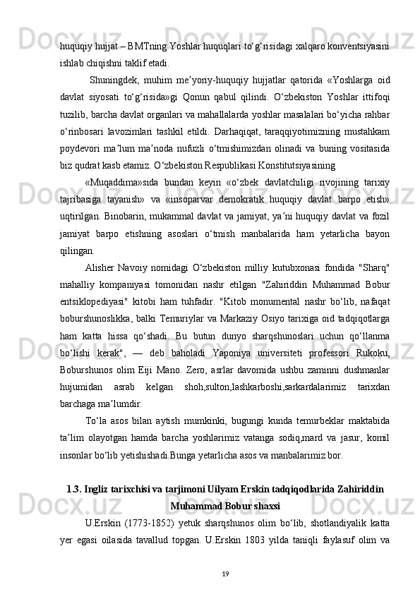 1.3. Ingliz tarixchisi va tarjimoni Uilyam Erskin tadqiqodlarida Zahiriddin Muhammad Bobur shaxsi 19
