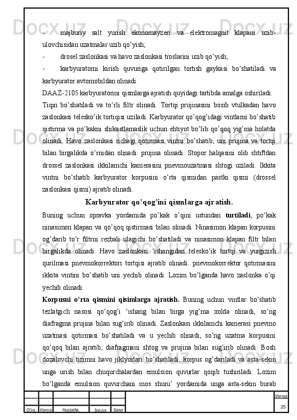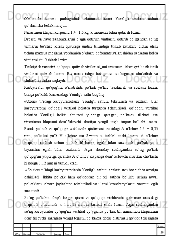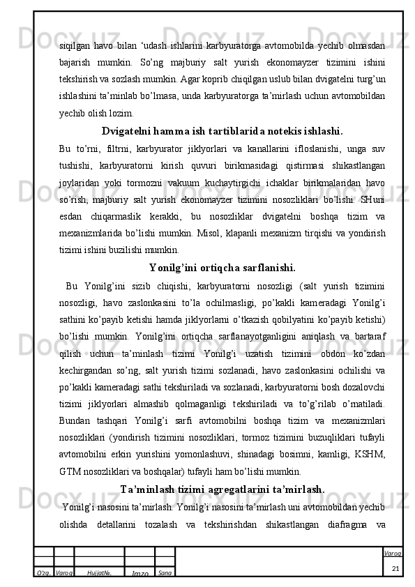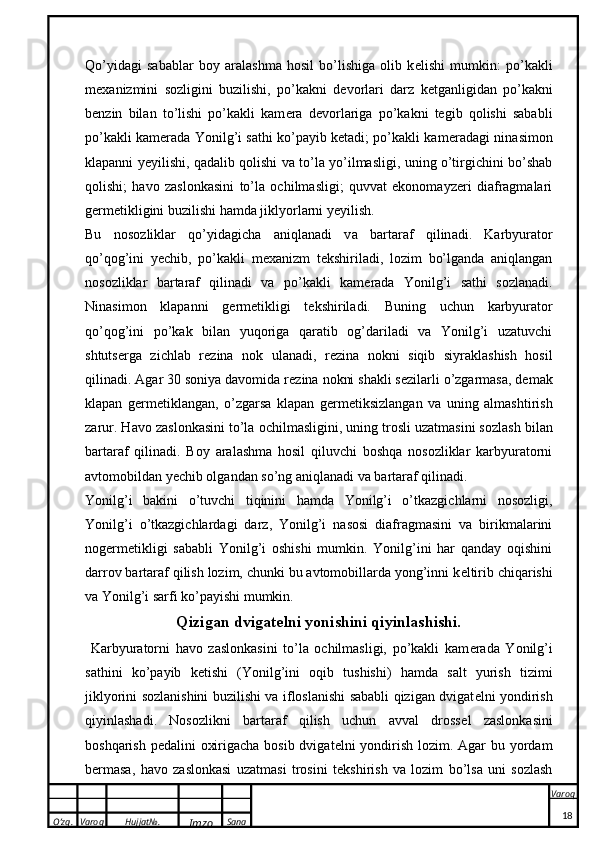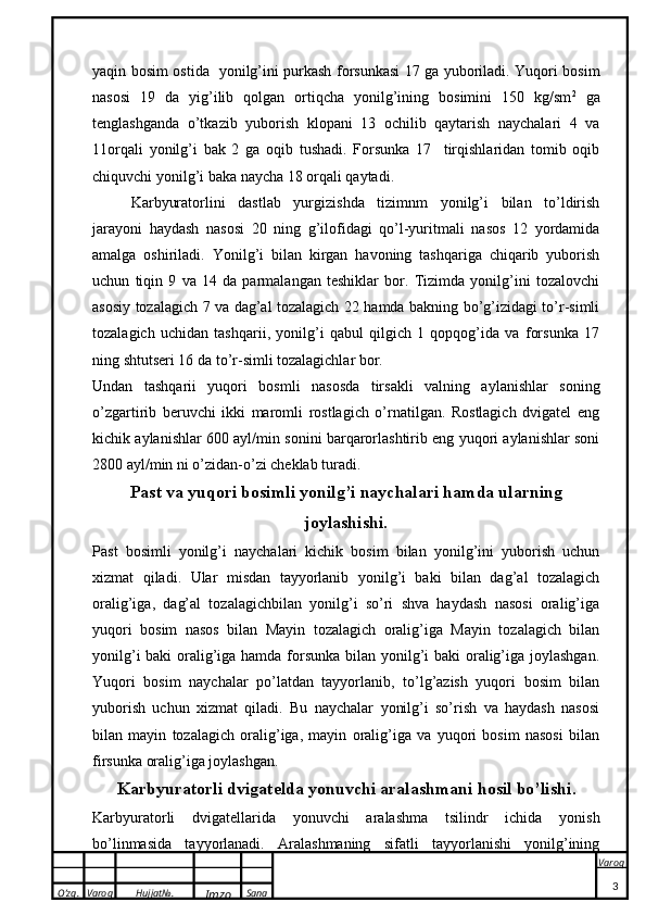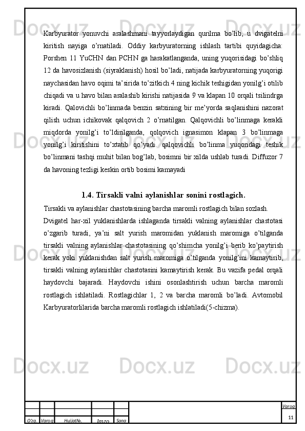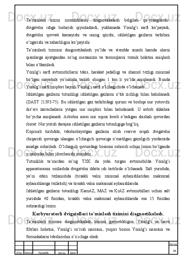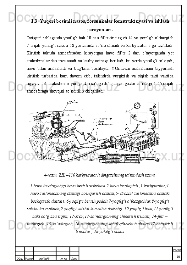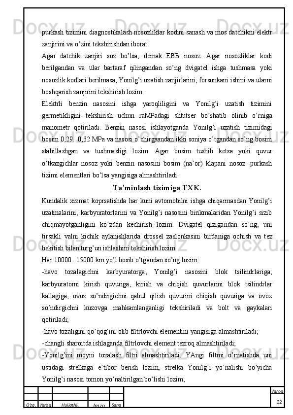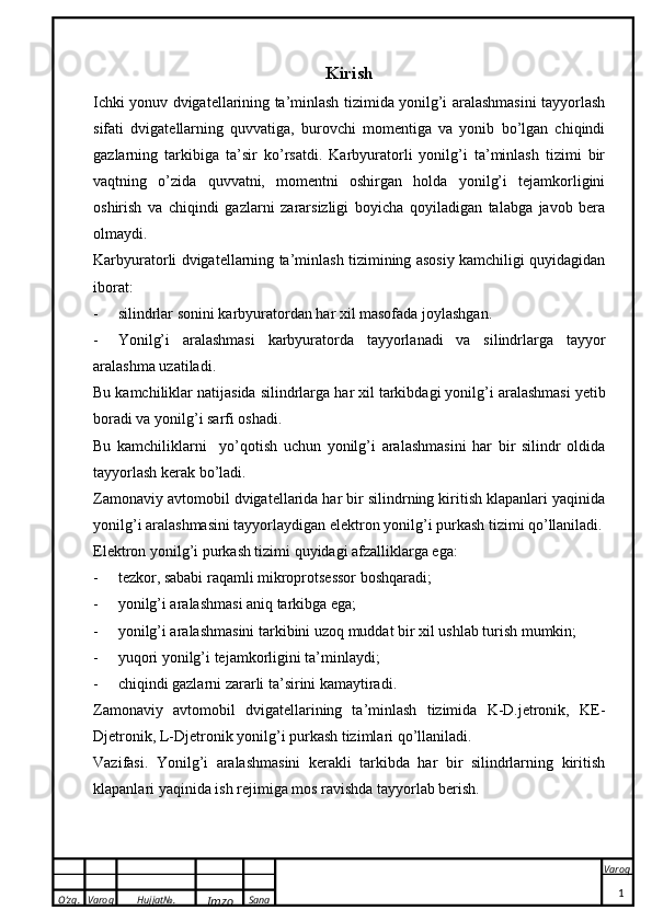 Zamonaviy avtomobillar dvigatellarining ta’minlash tizimi