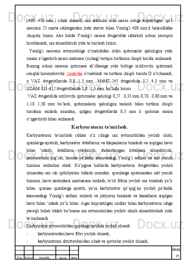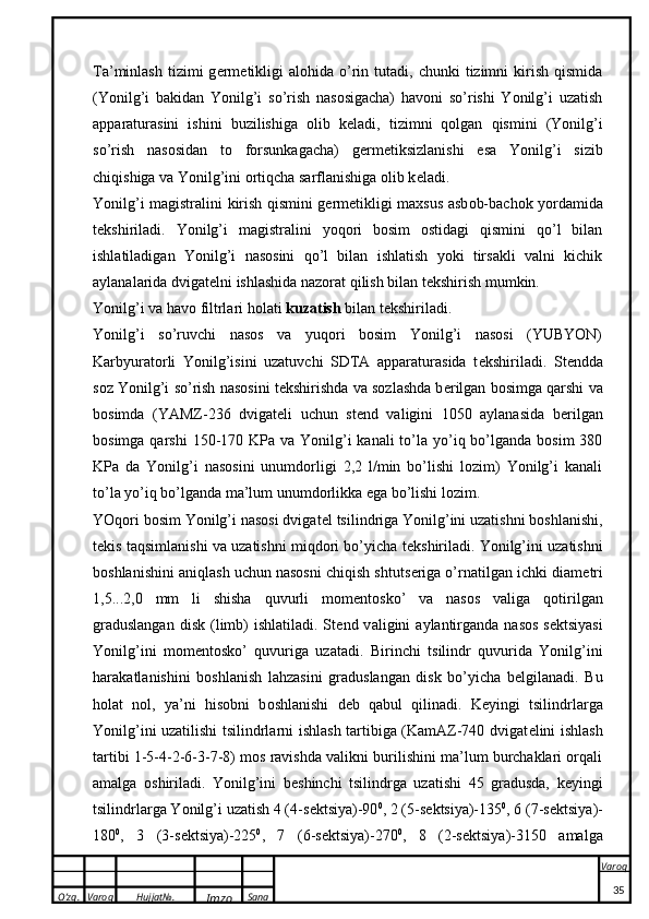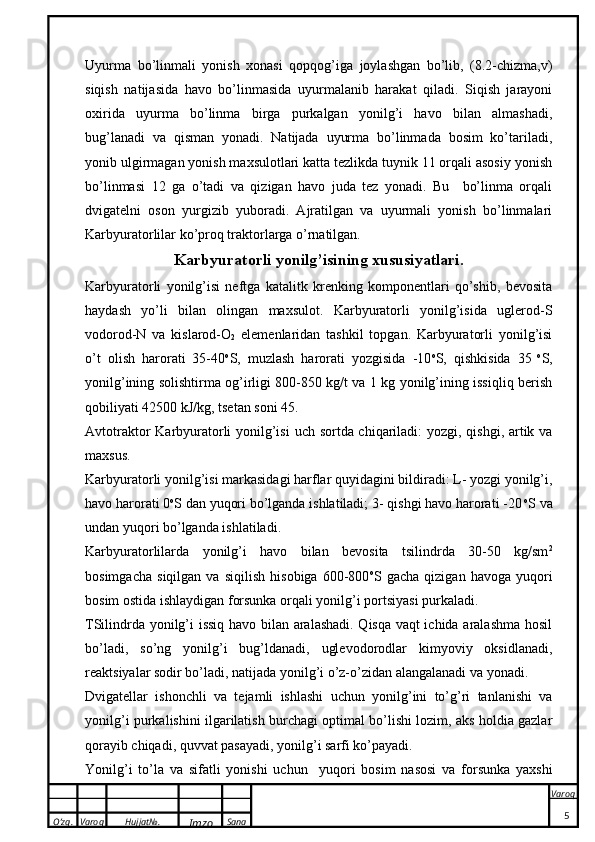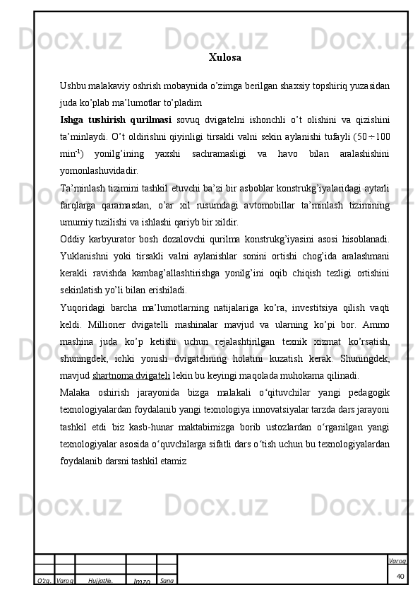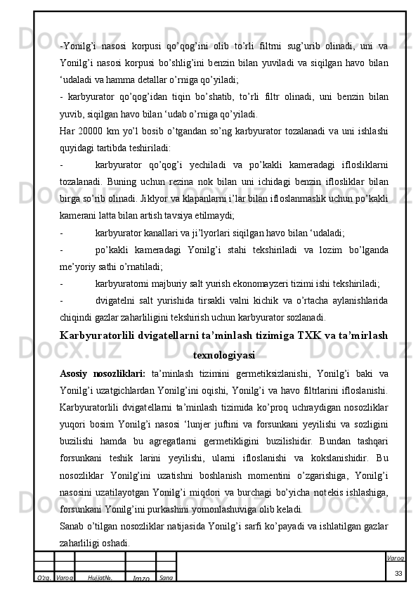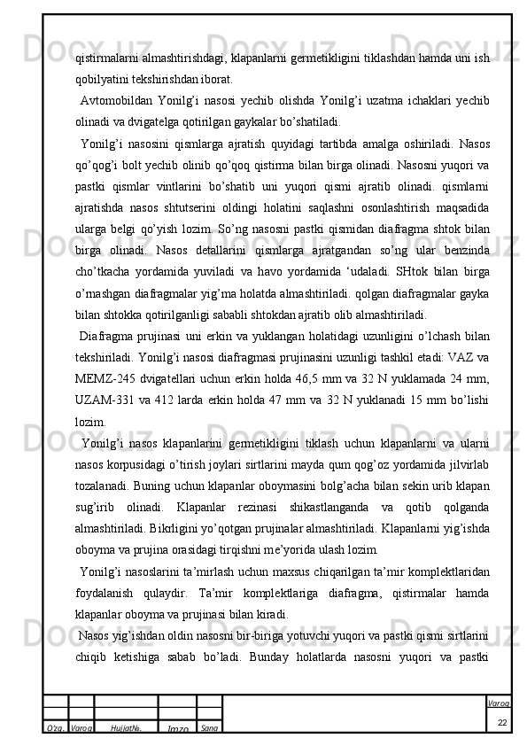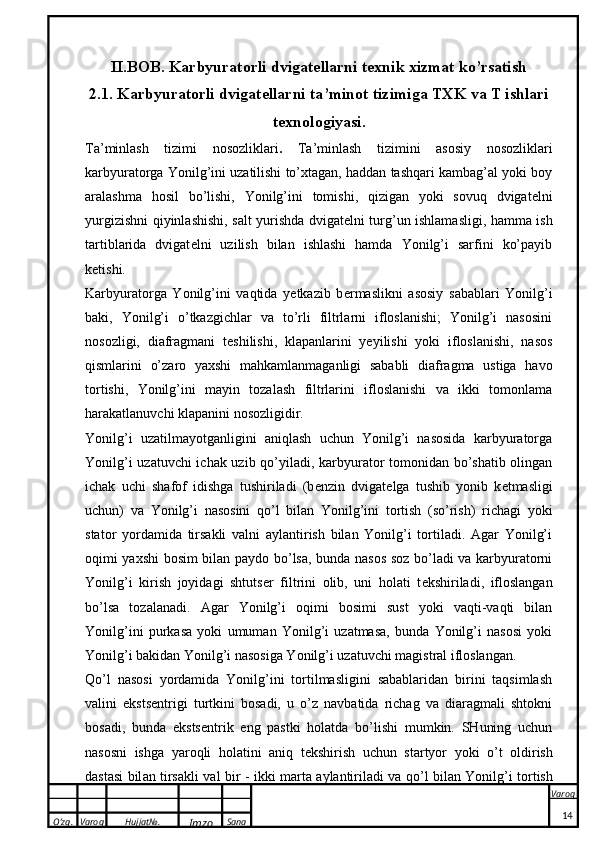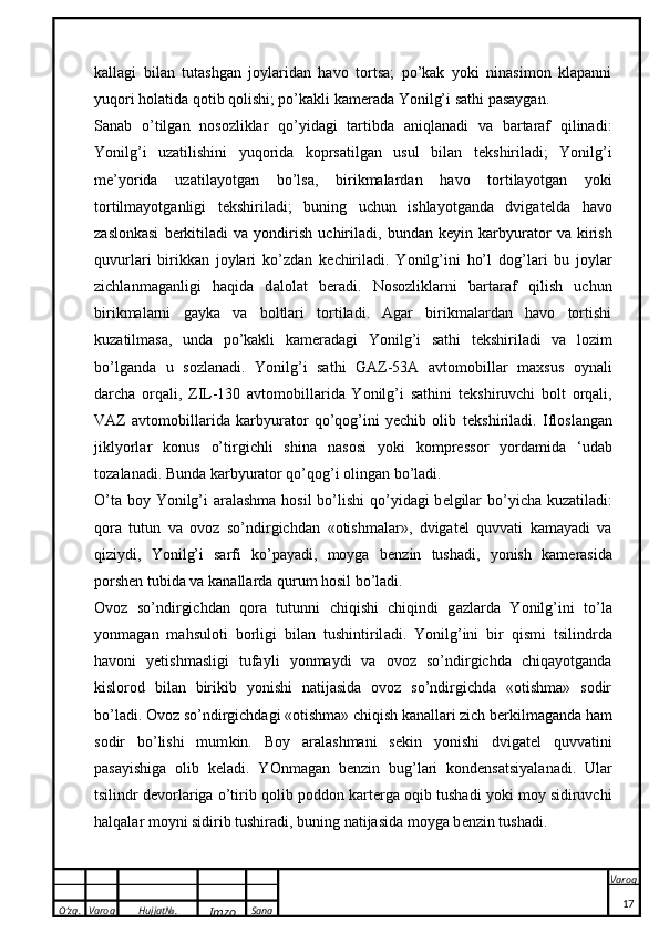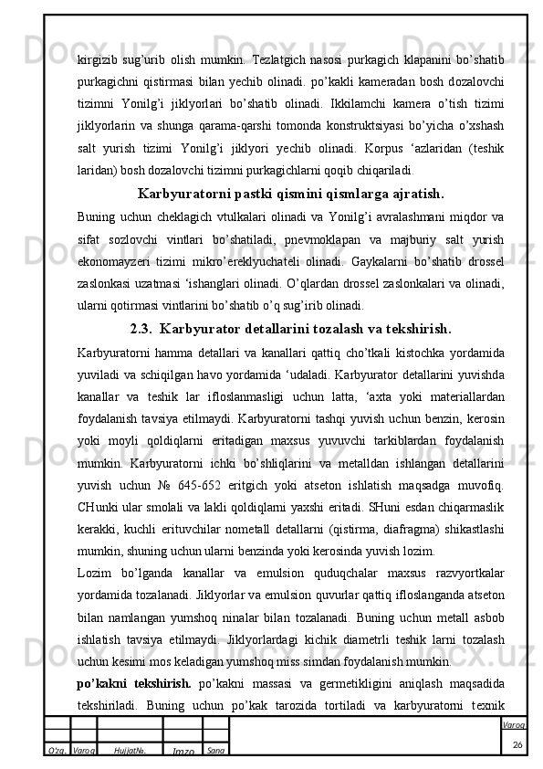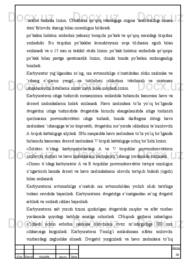 Zamonaviy avtomobillar dvigatellarining ta’minlash tizimi