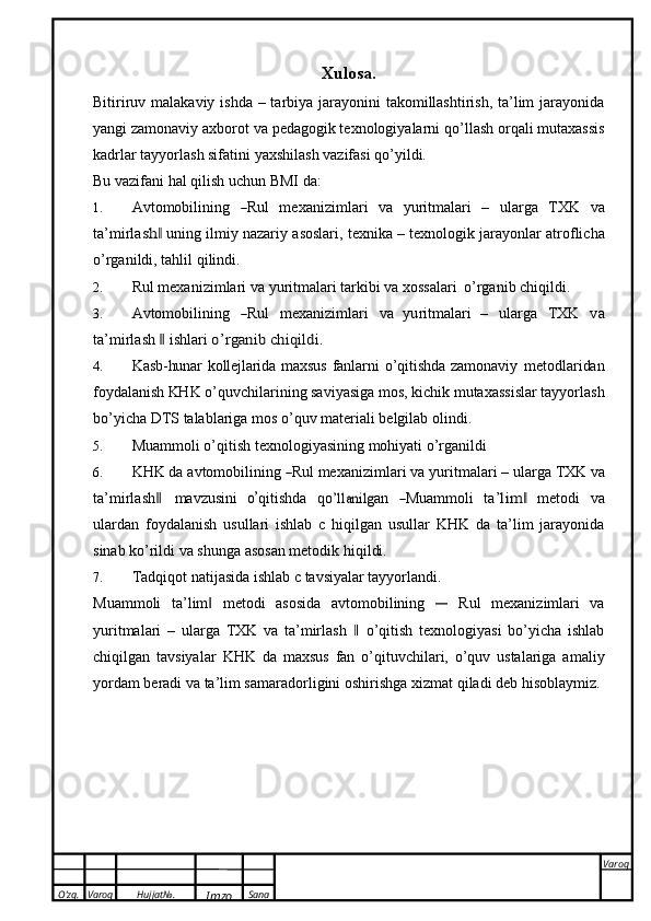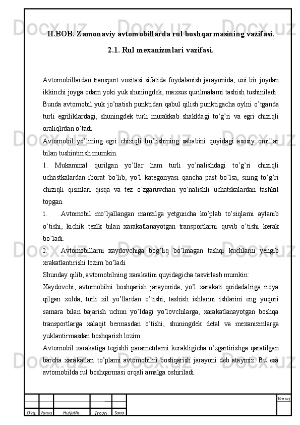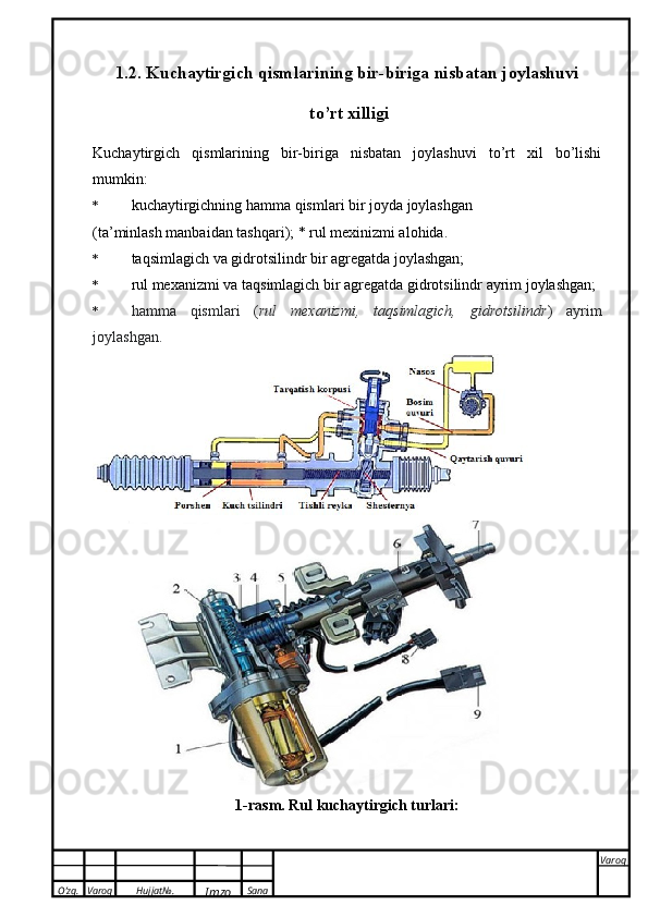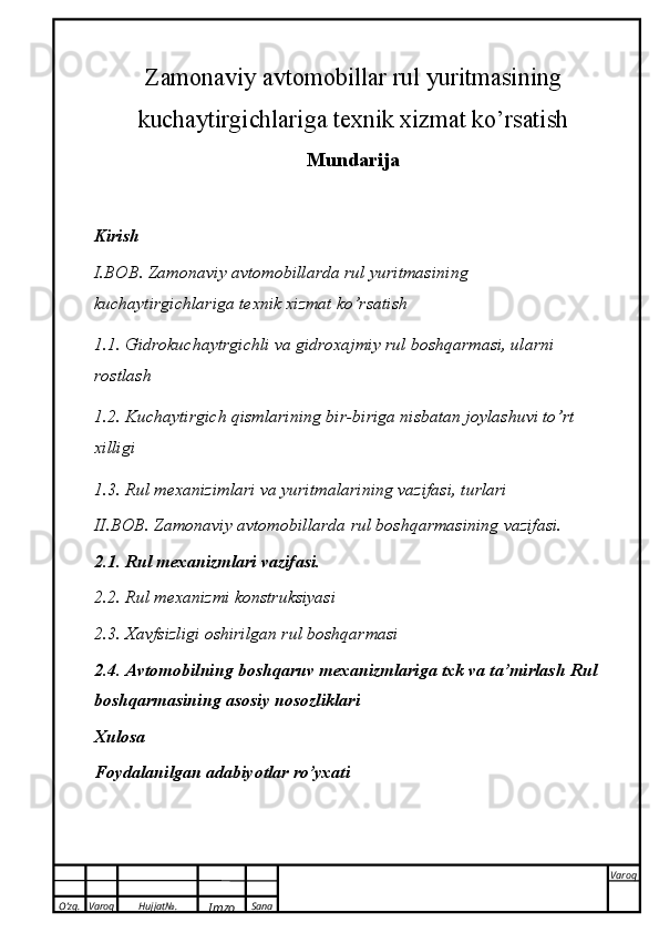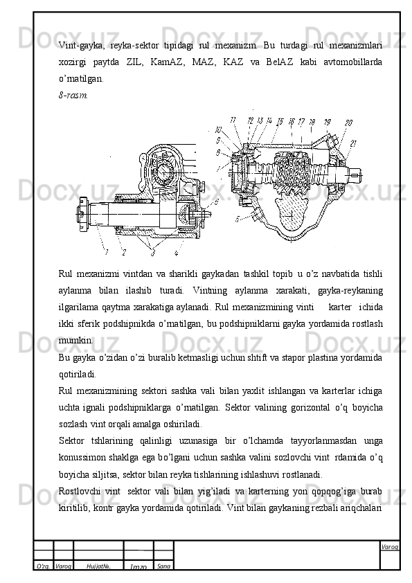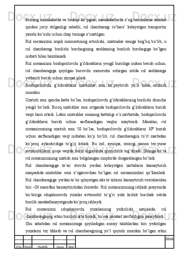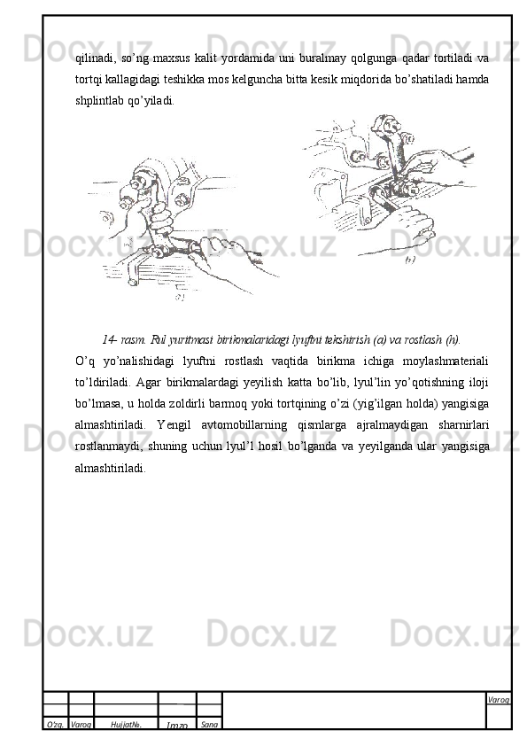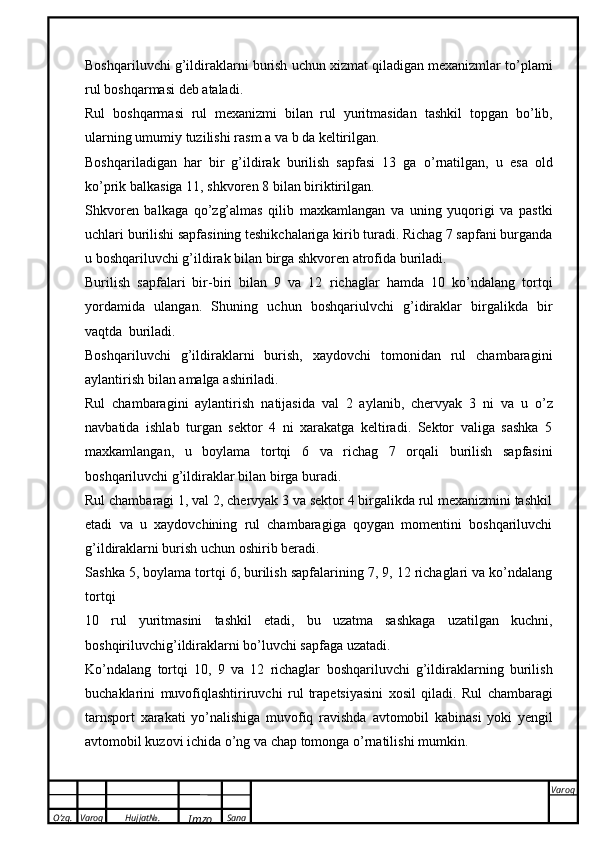 Zamonaviy avtomobillar rul yuritmasining kuchaytirgichlariga texnik xizmat ko’rsatish