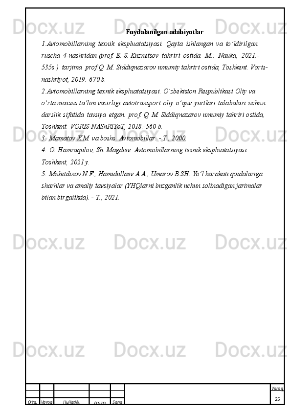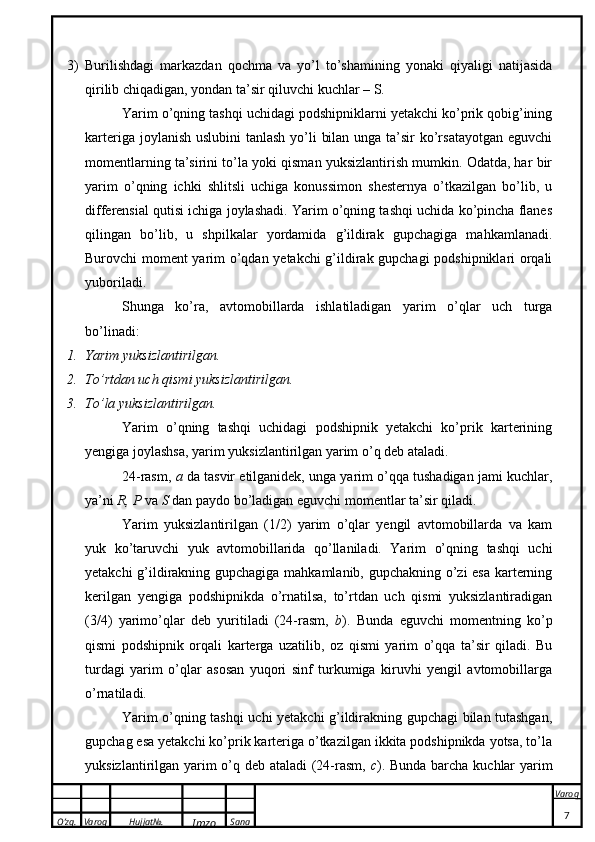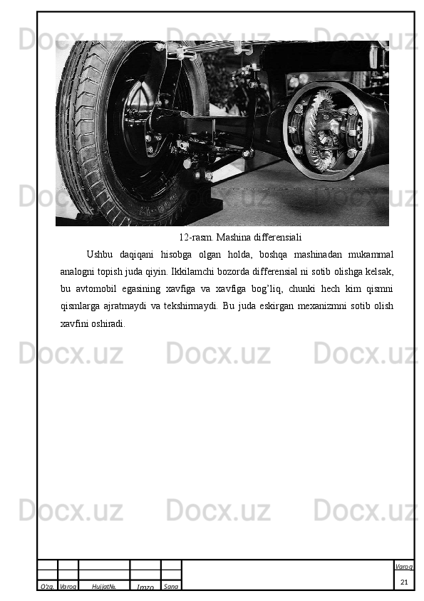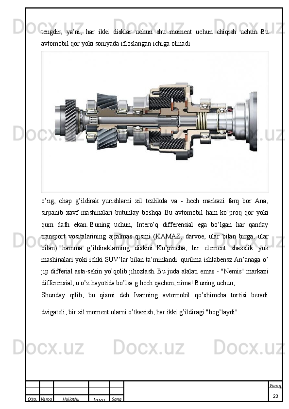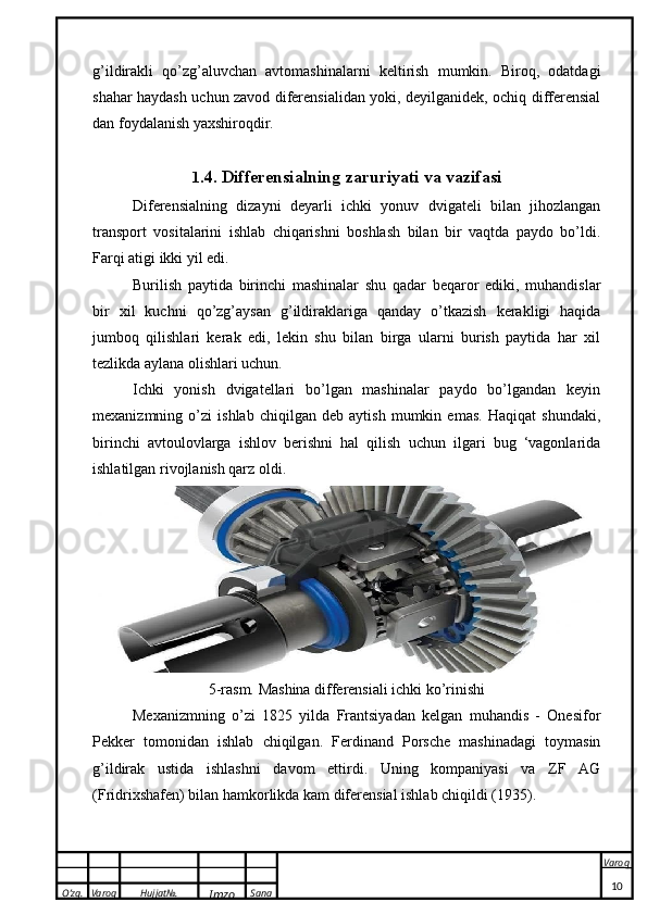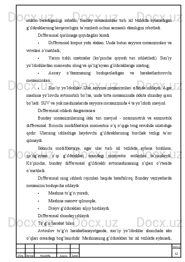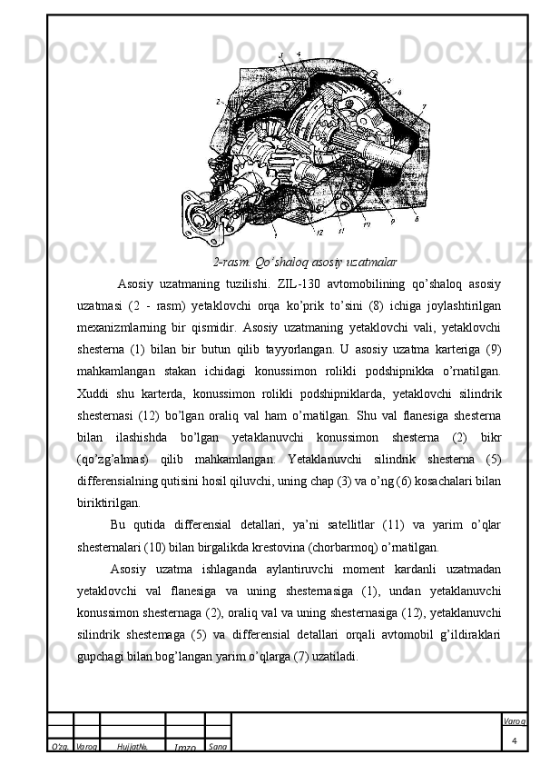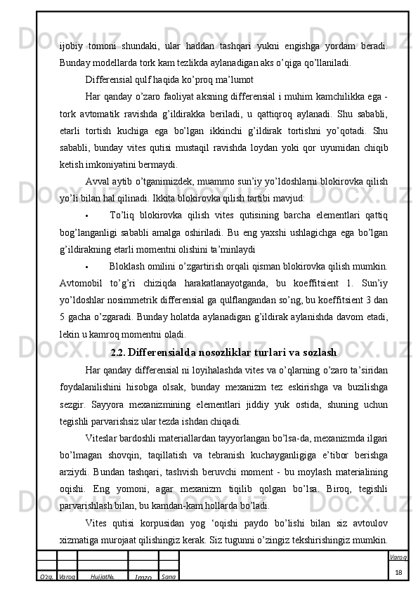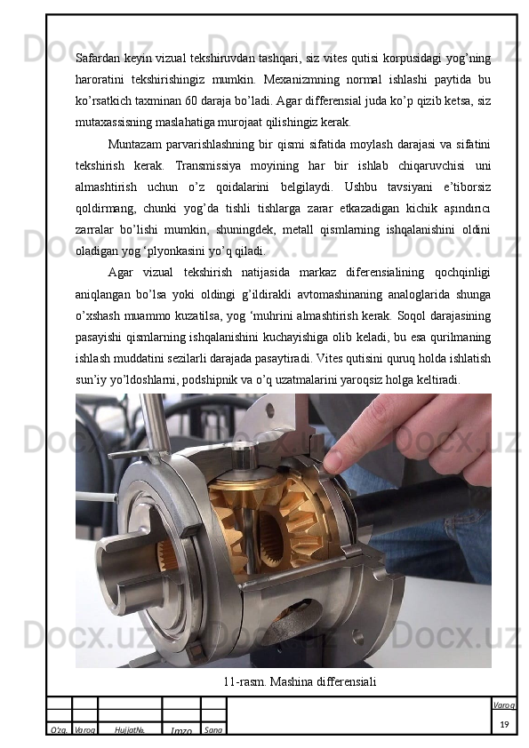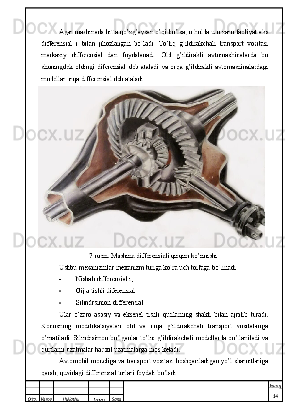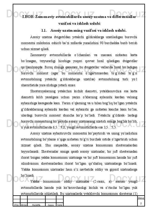 Zamonaviy avtomobillarning asosiy uzatmasi va differensialligiga texnik xizmat ko’rsatish