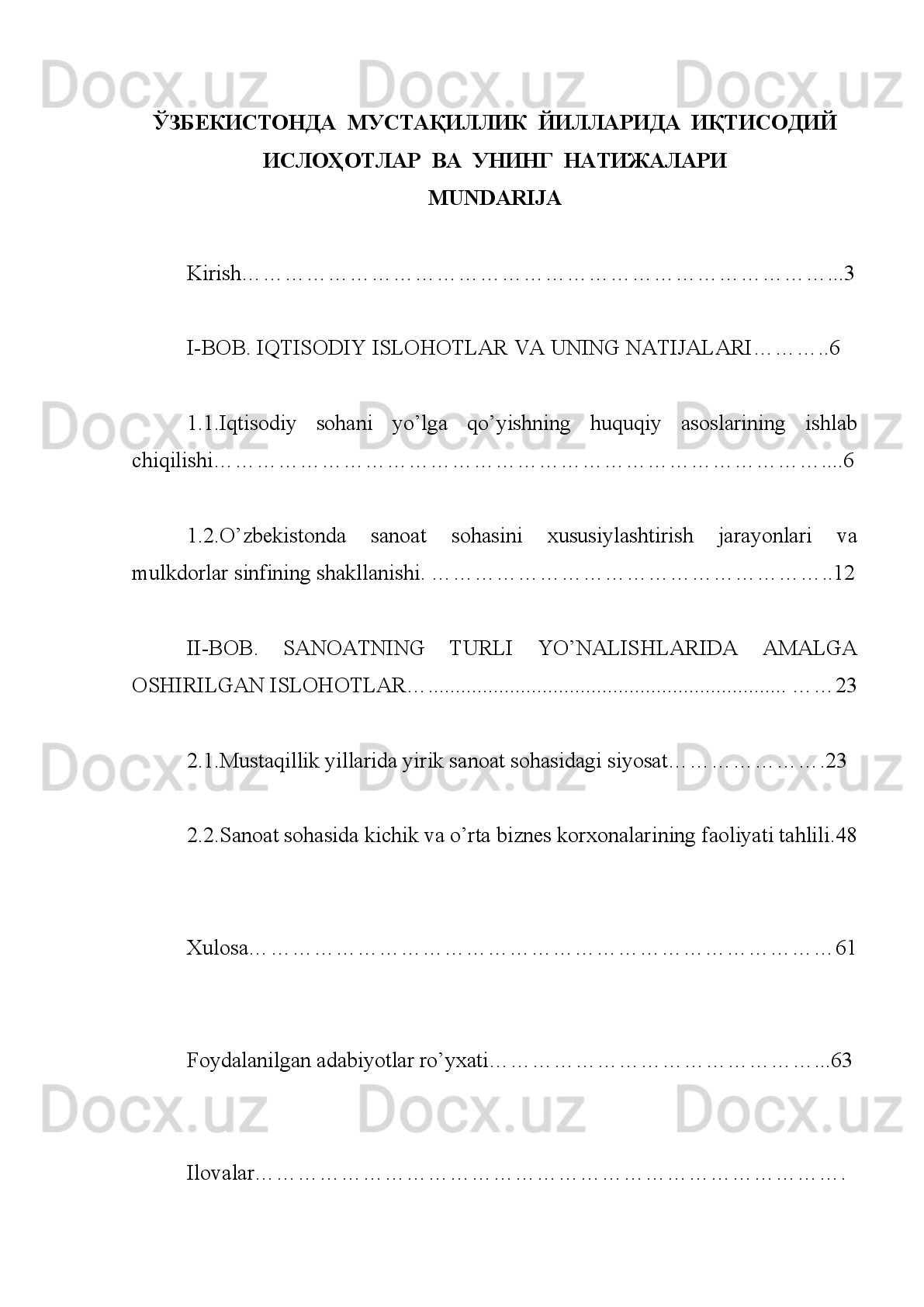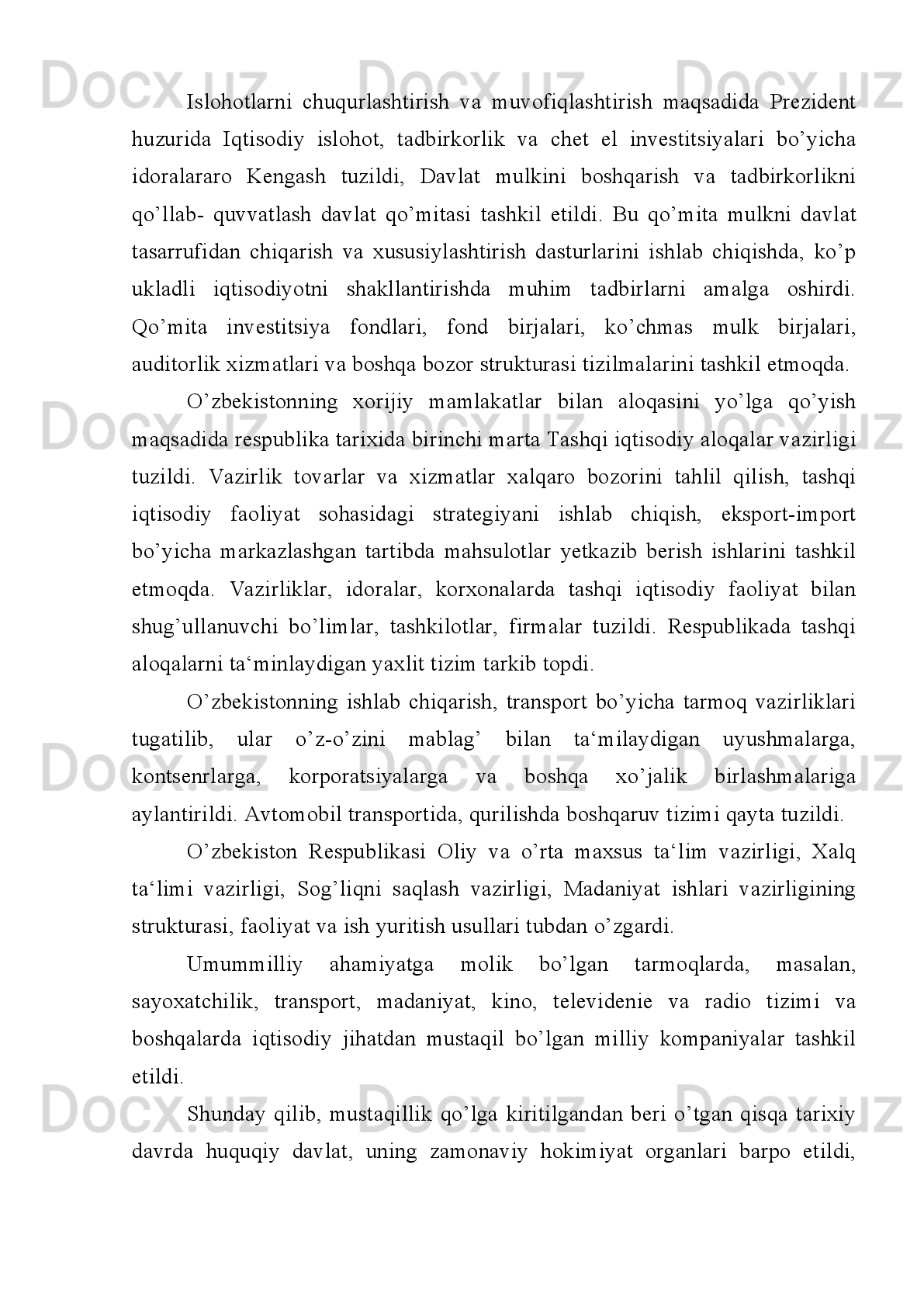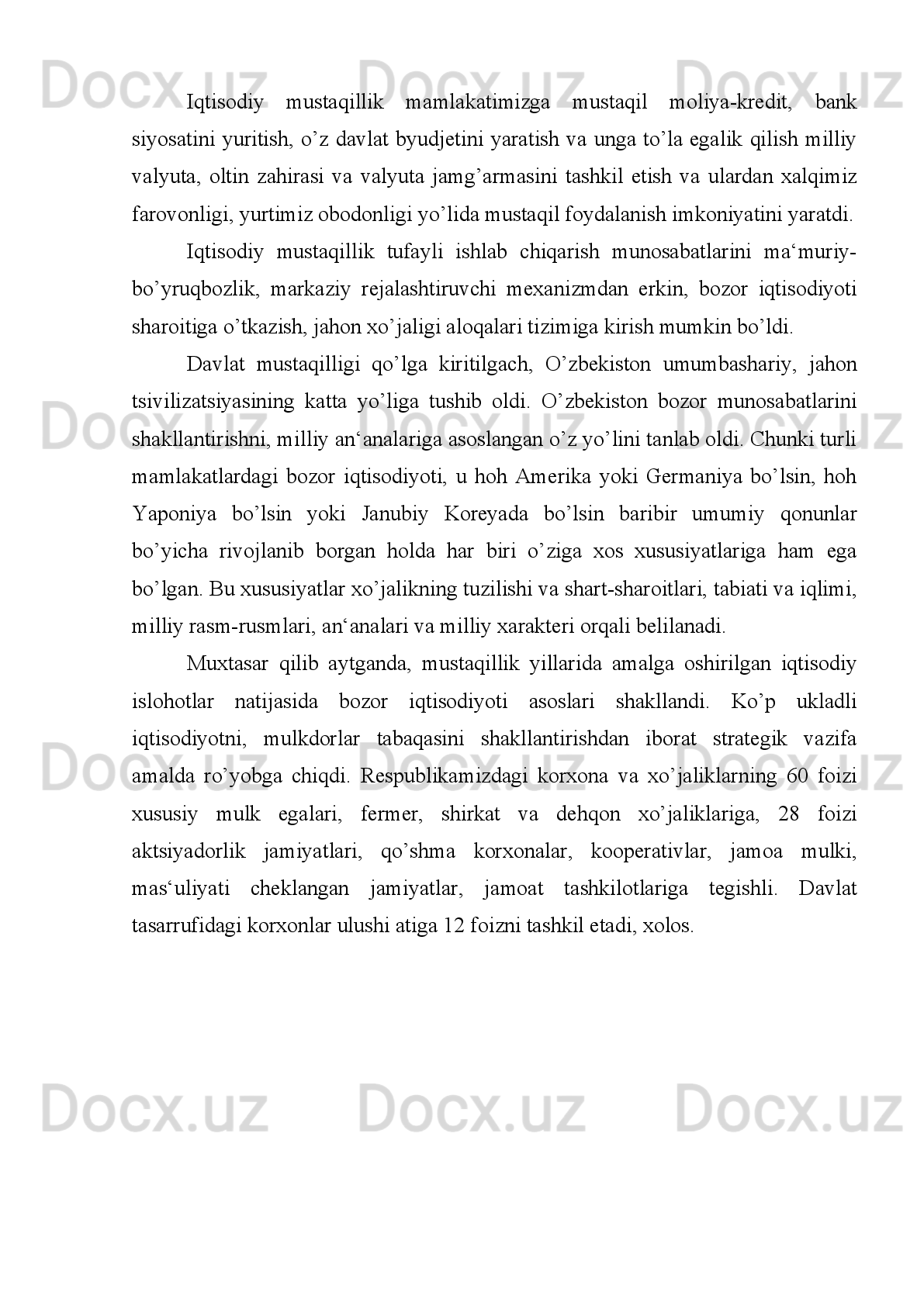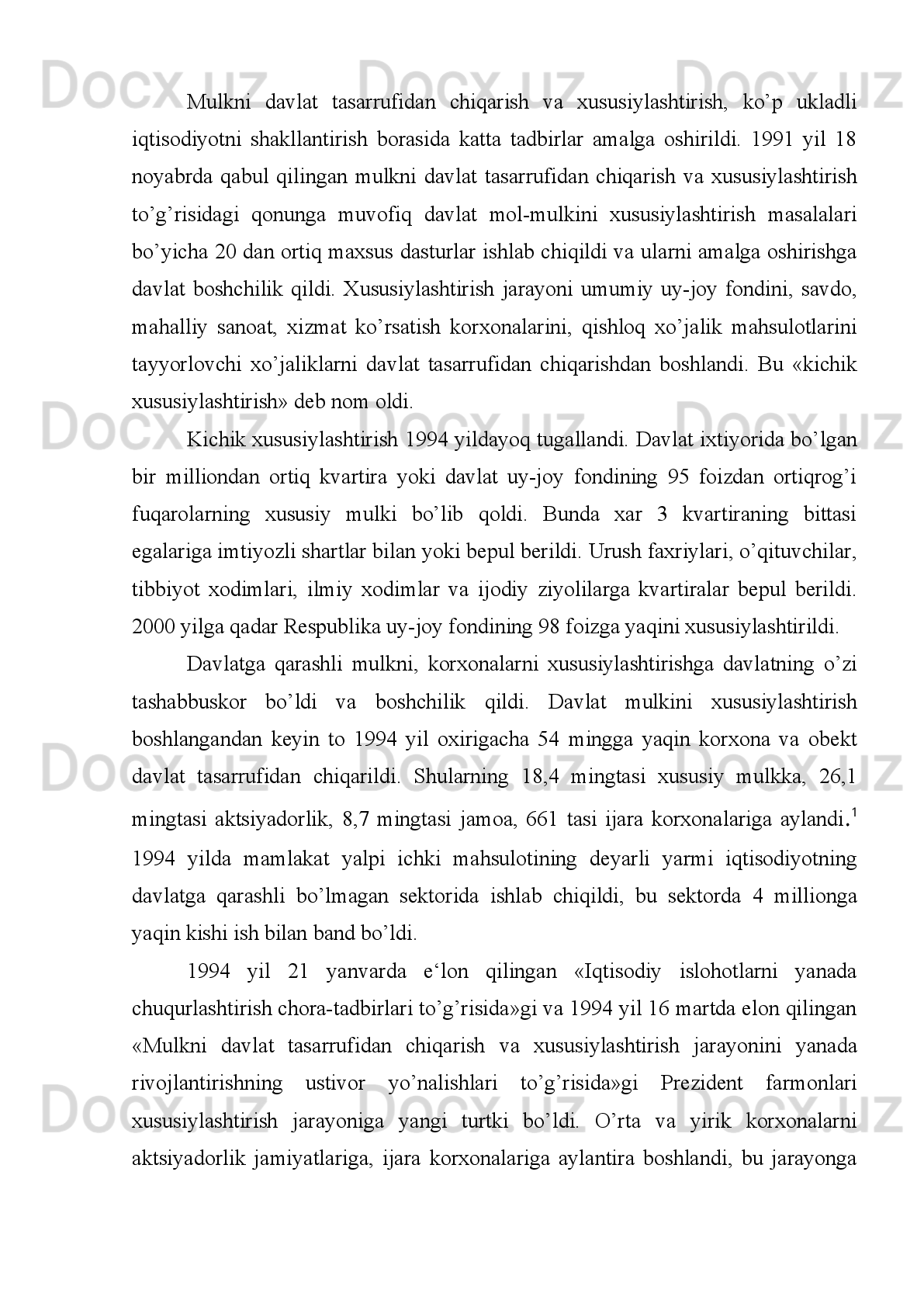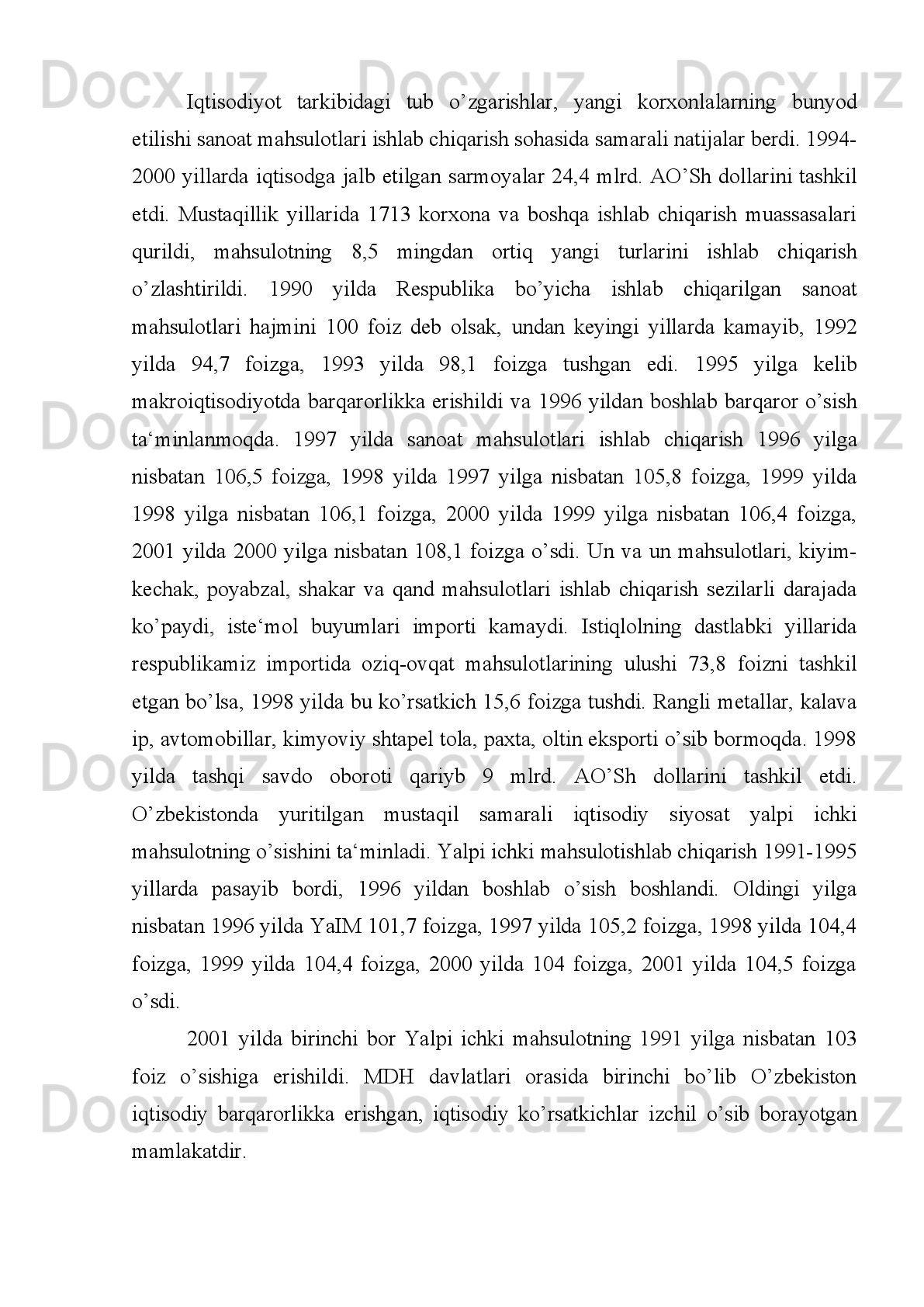 Ўзбекистонда мустақиллик йилларида иқтисодий ислоҳотлар ва унинг натижалари