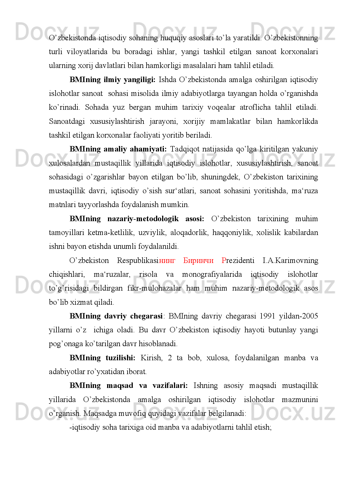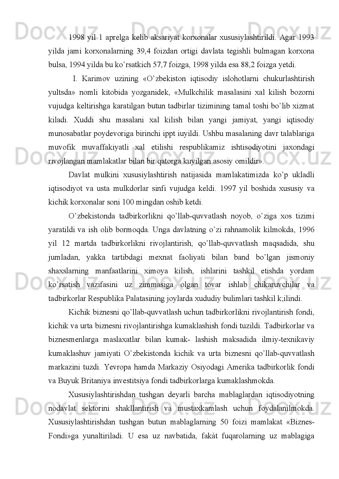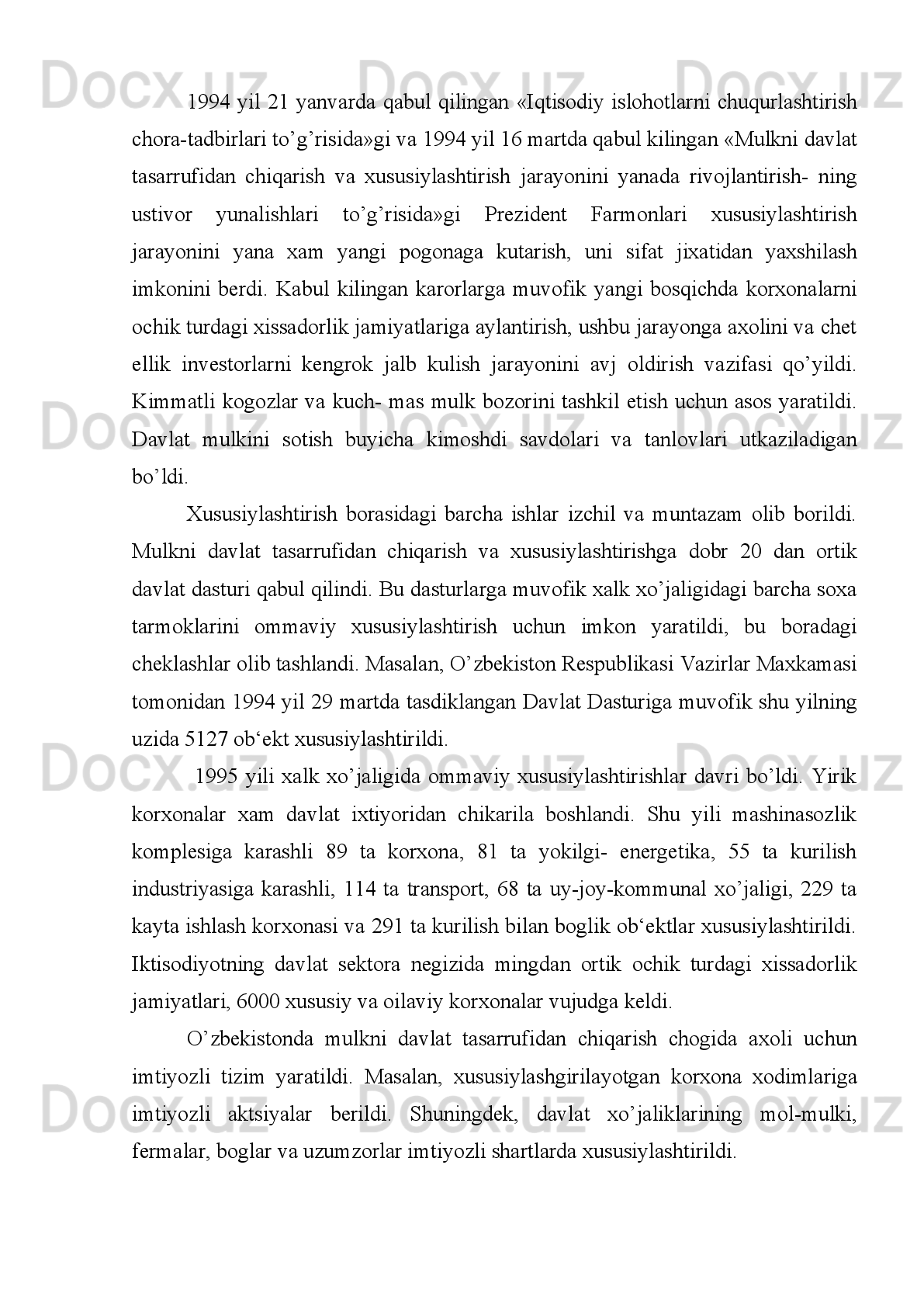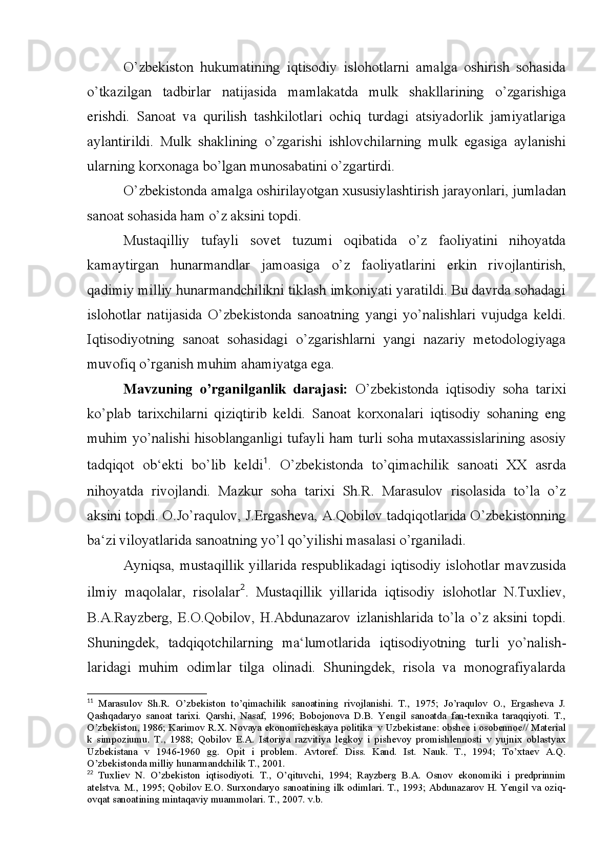 Ўзбекистонда мустақиллик йилларида иқтисодий ислоҳотлар ва унинг натижалари