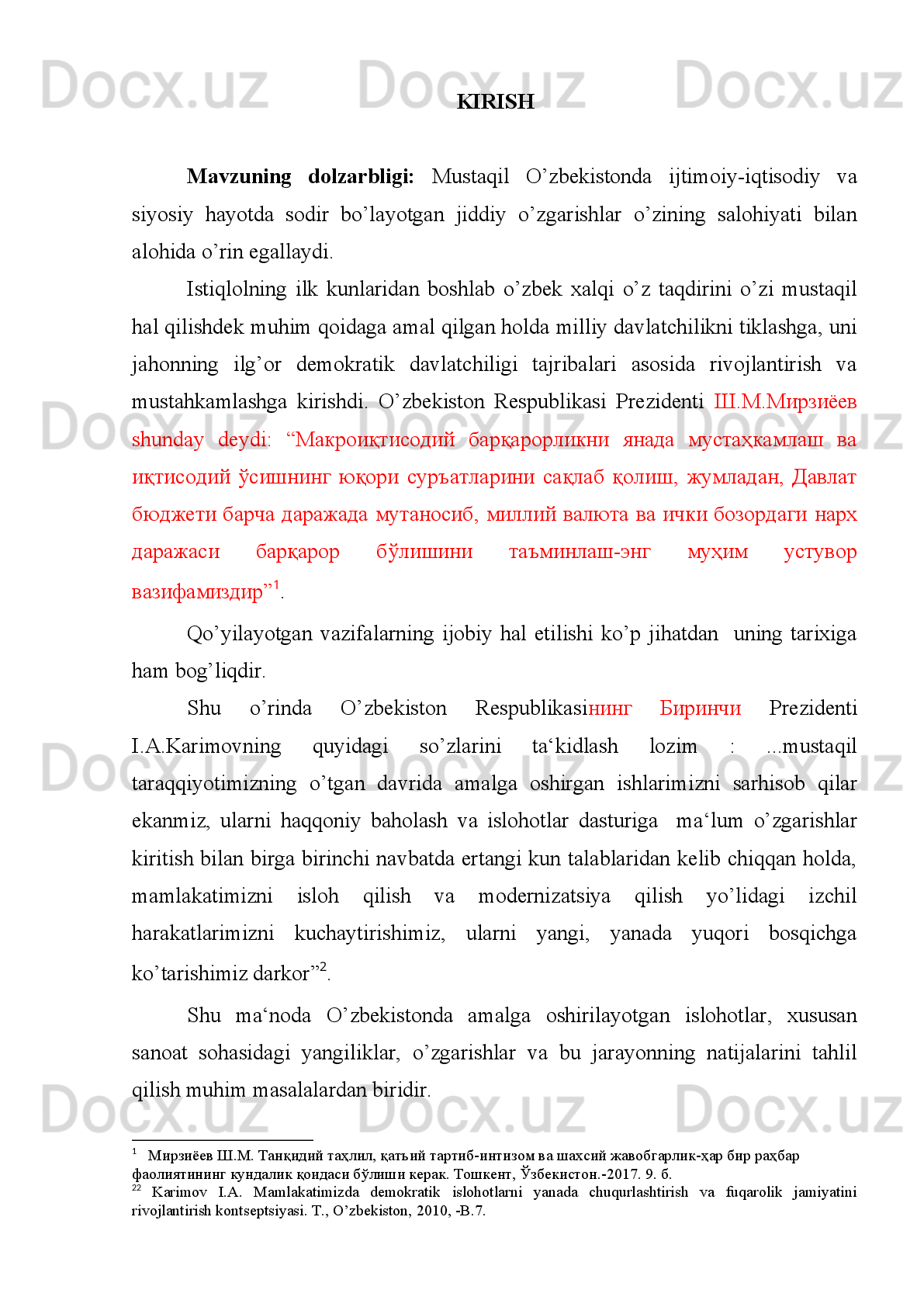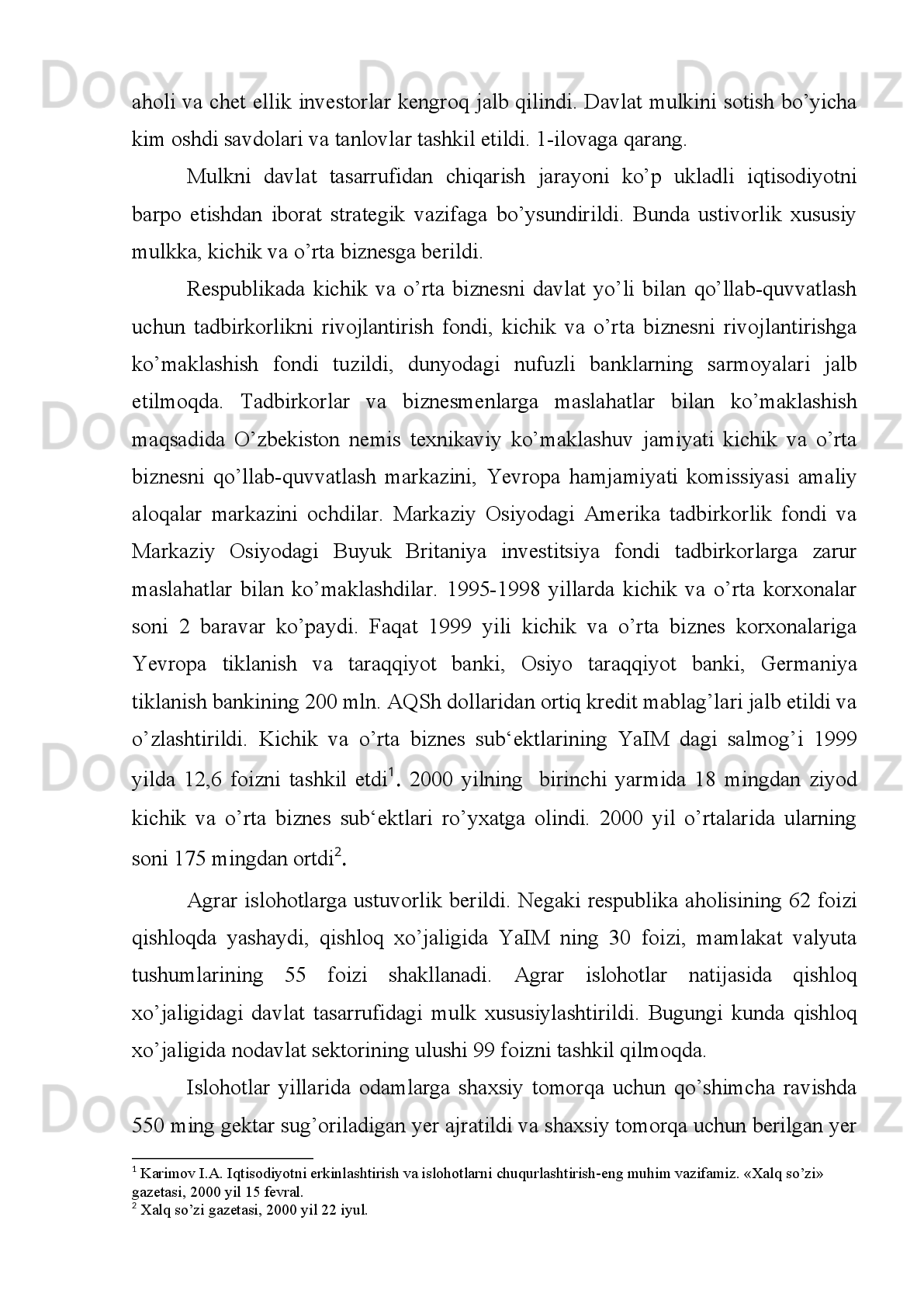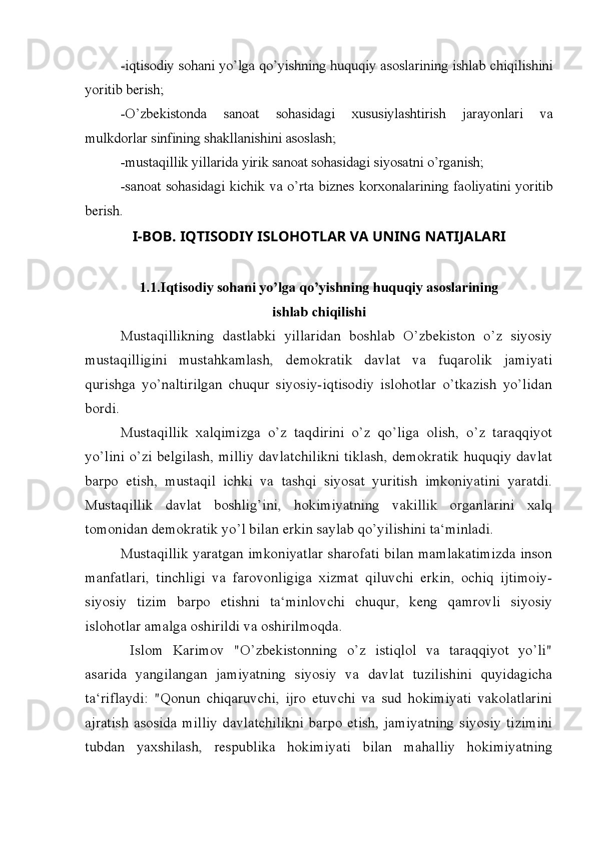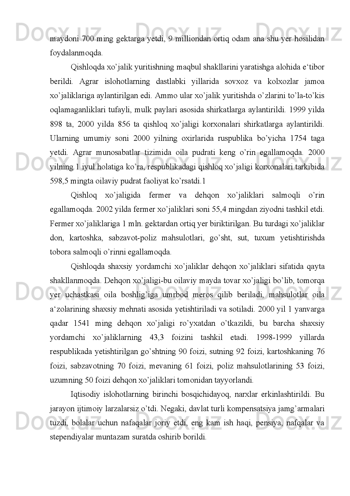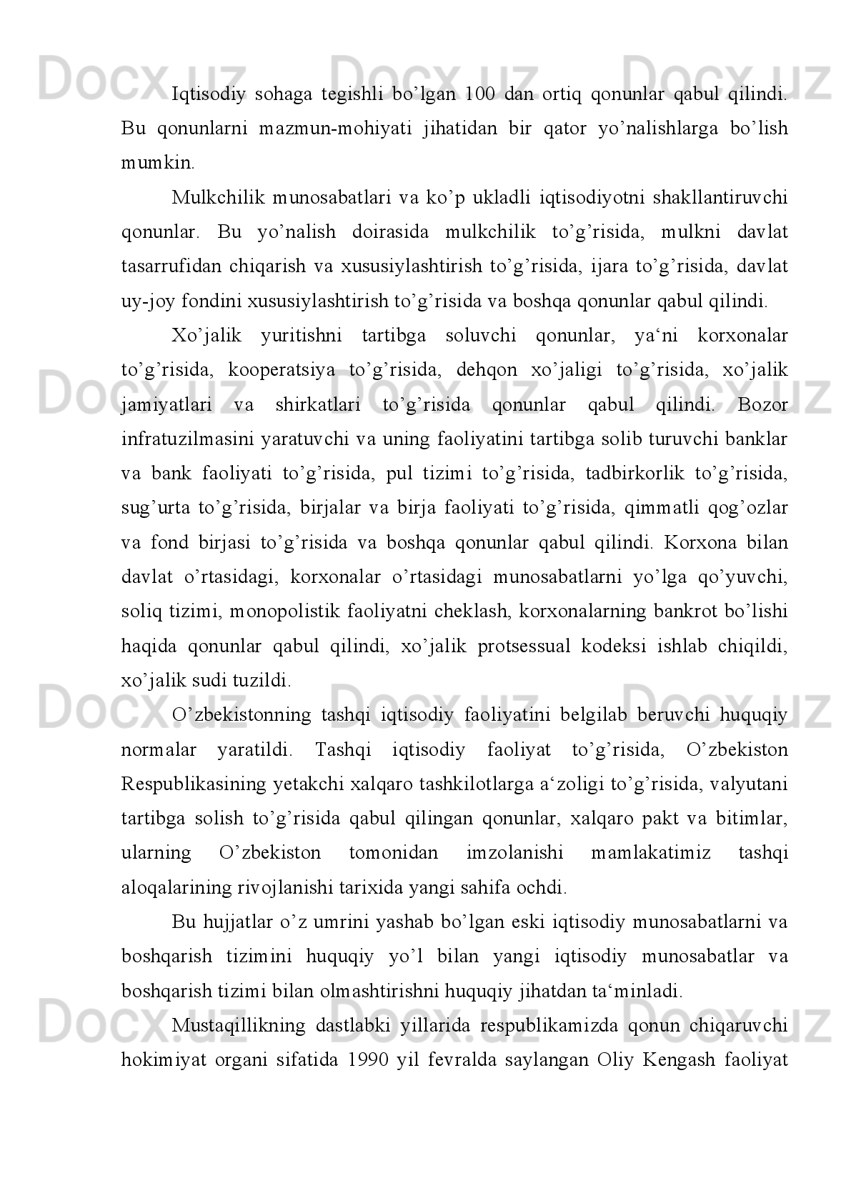 Ўзбекистонда мустақиллик йилларида иқтисодий ислоҳотлар ва унинг натижалари