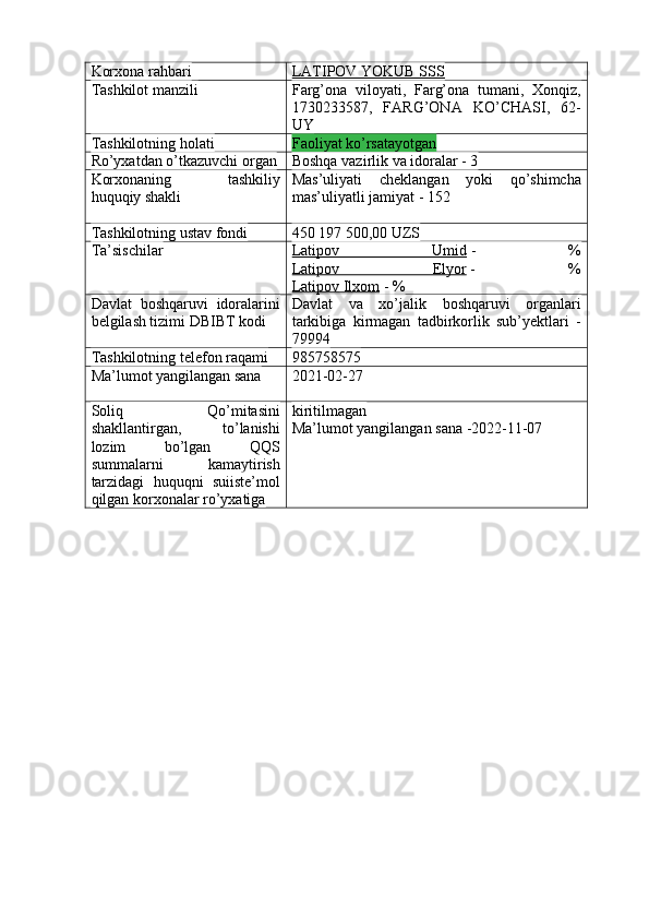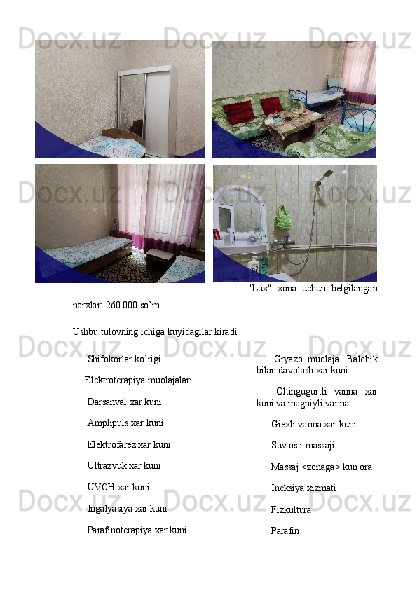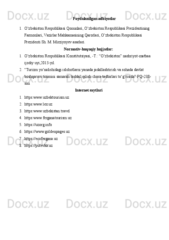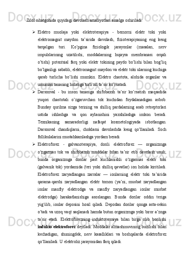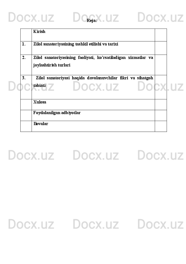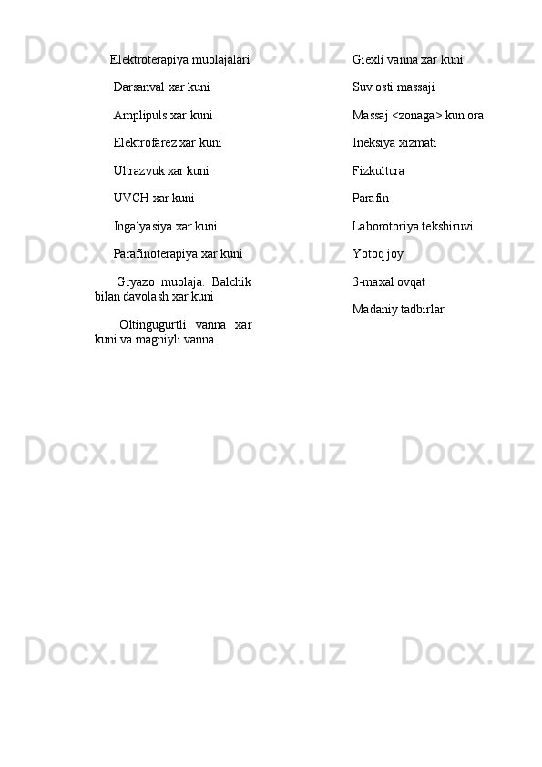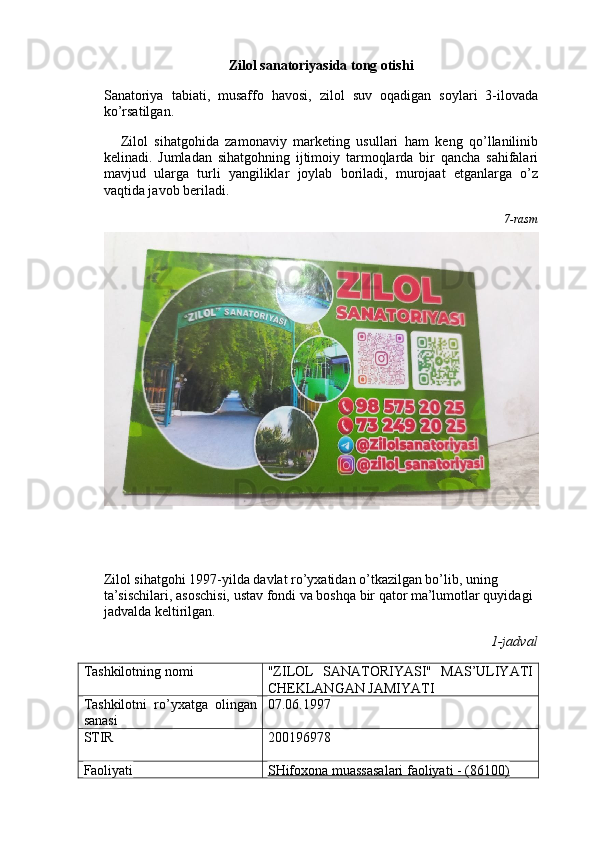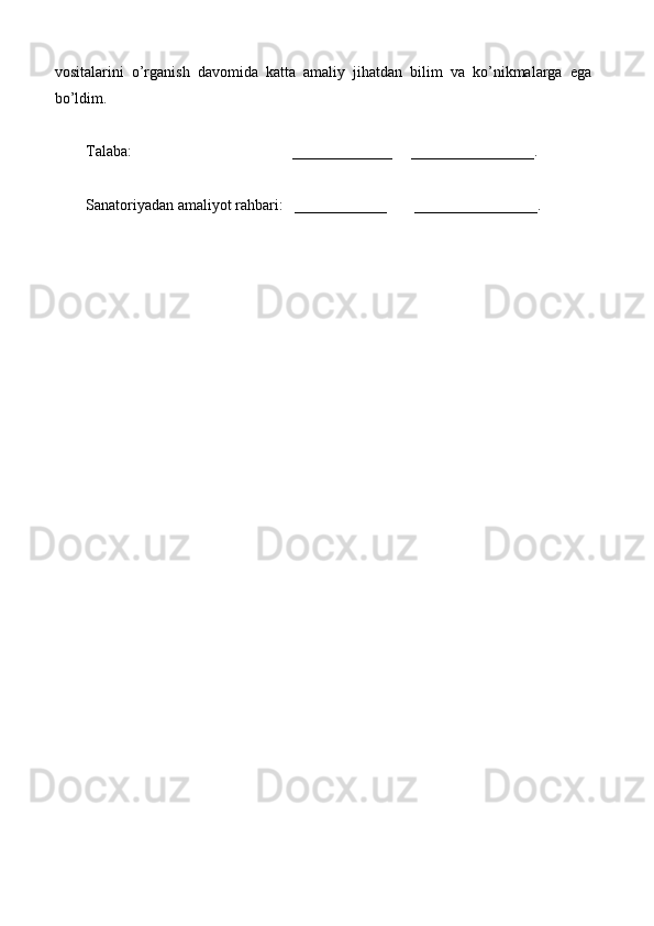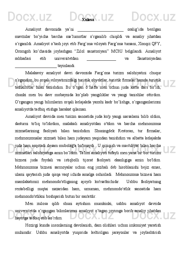 Sanatoriyalar bo'yicha amaliyot hisoboti uchun