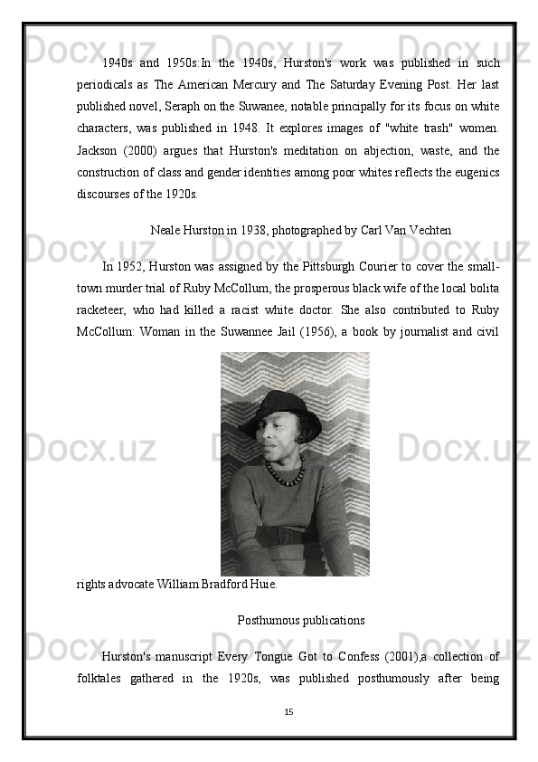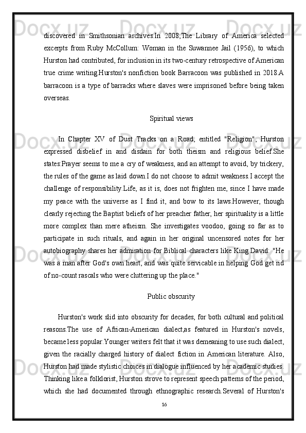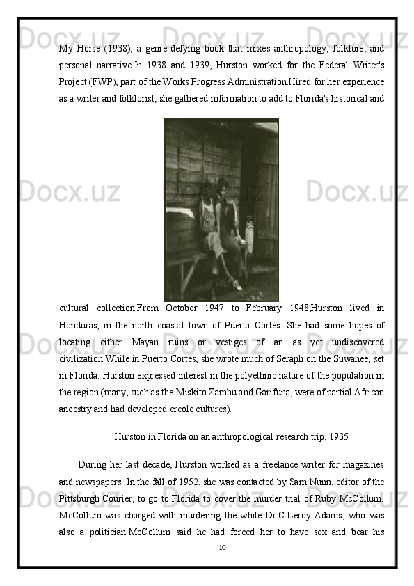 cultural   collection.From   October   1947   to   February   1948,Hurston   lived   in