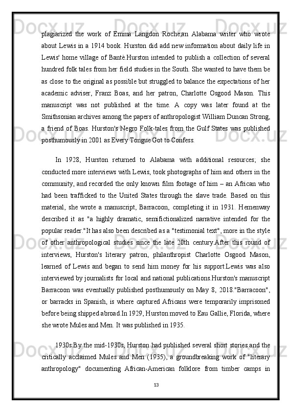 American folk tales. She also interviewed Cudjoe Kazzola Lewis, of  Africatown,