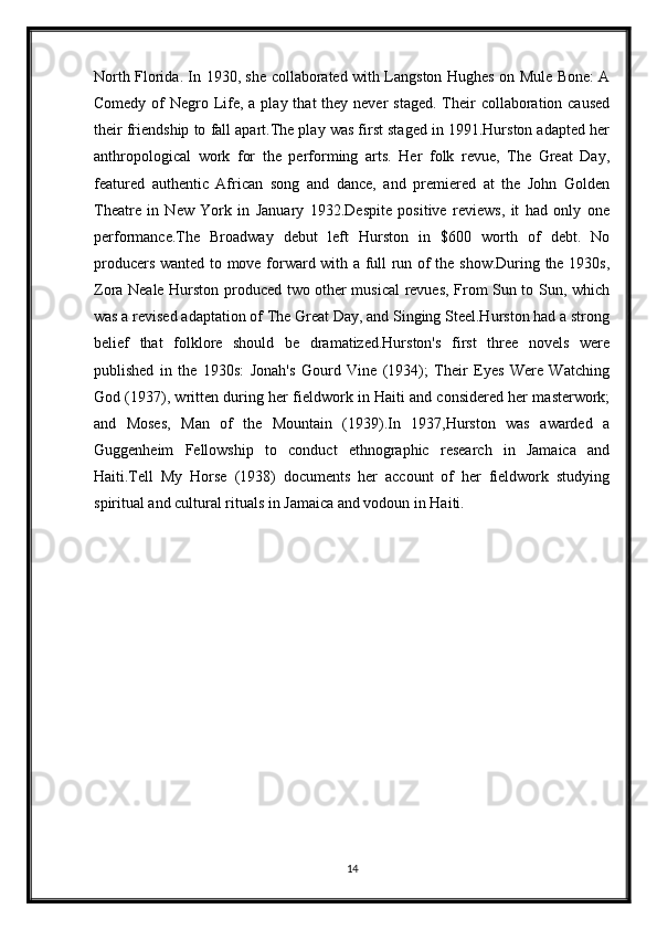 in Florida. Hurston expressed interest in the polyethnic nature of the population in