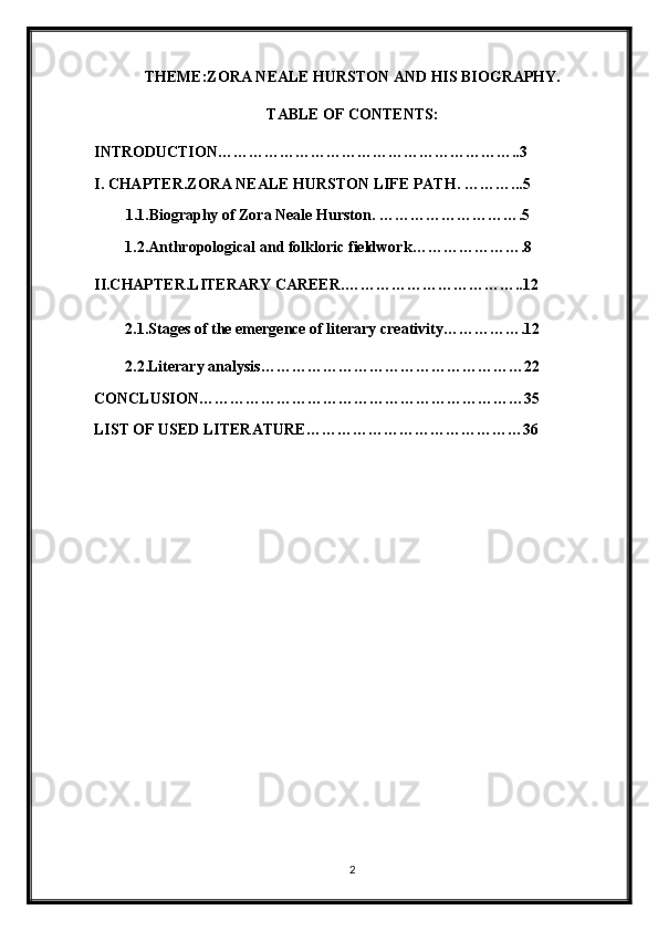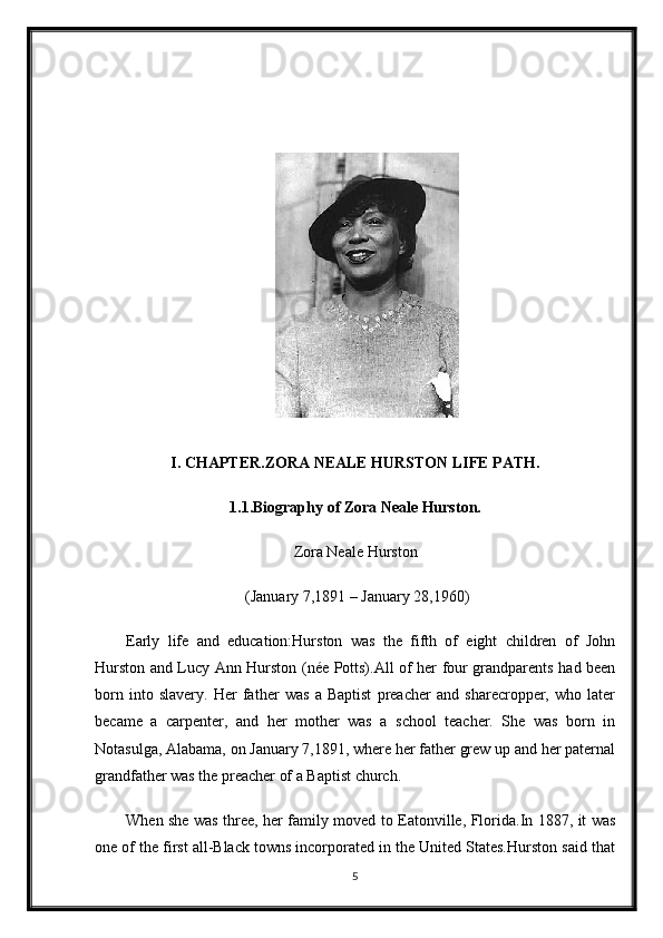 THEME: ZORA NEALE HURSTON AND HIS BIOGRAPHY.