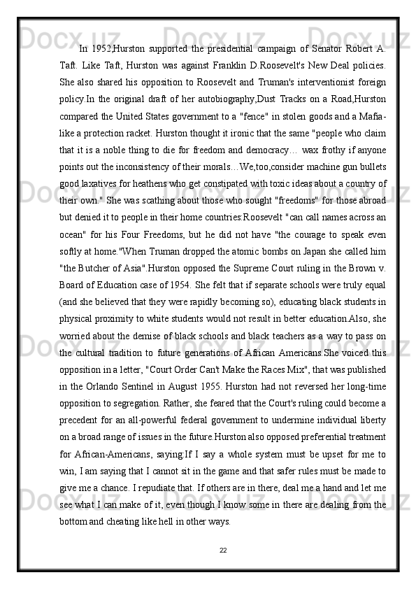 even feeding one's self". Her views on communism, the New Deal, civil rights, and