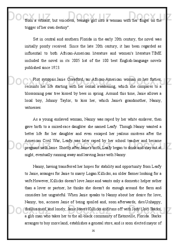 research   on   hoodoo.   The   most   popular   of   her   four   novels   is   Their   Eyes   Were