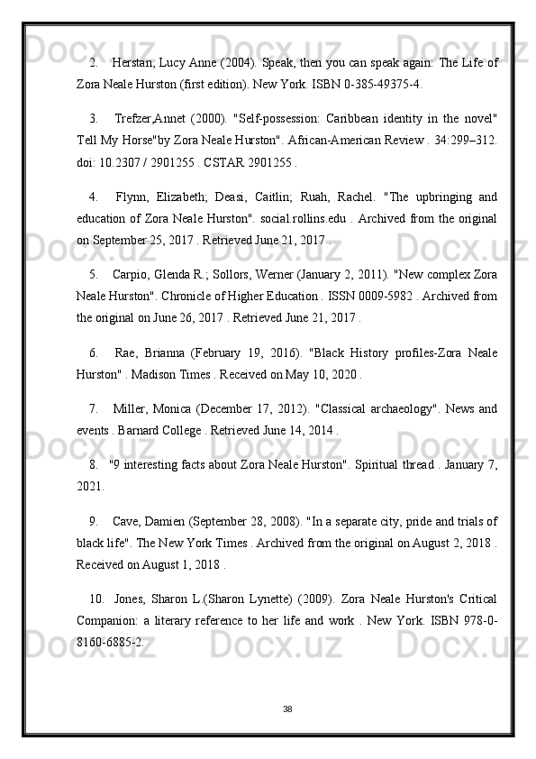 13.   "Chronology   of   Hurston's   life".University   of   Central   Florida   .   Archived
