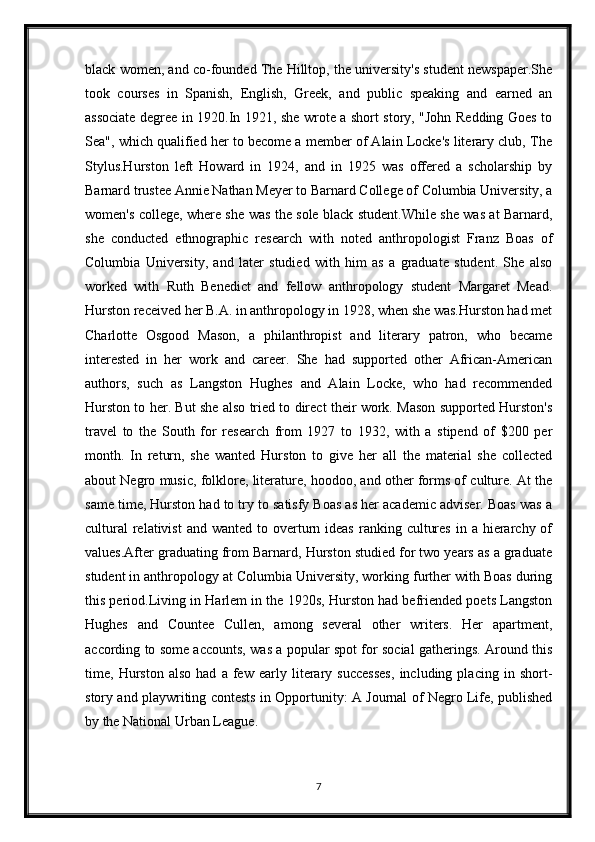 writers   at   its   center.   Shortly   before   she   entered   Barnard,   Hurston's   short   story